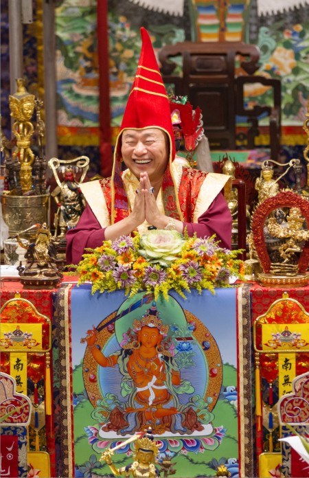 首先我們敬禮真佛宗傳承祖師了鳴和尚、薩迦證空上師、十六世大寶法王噶瑪巴、吐登達爾吉上師,敬禮壇城三寶,敬禮護摩主尊「曼殊師利耶文殊師利菩薩」。