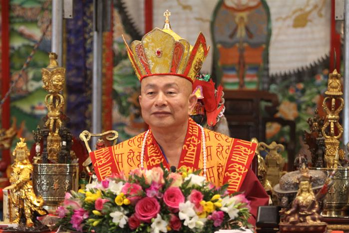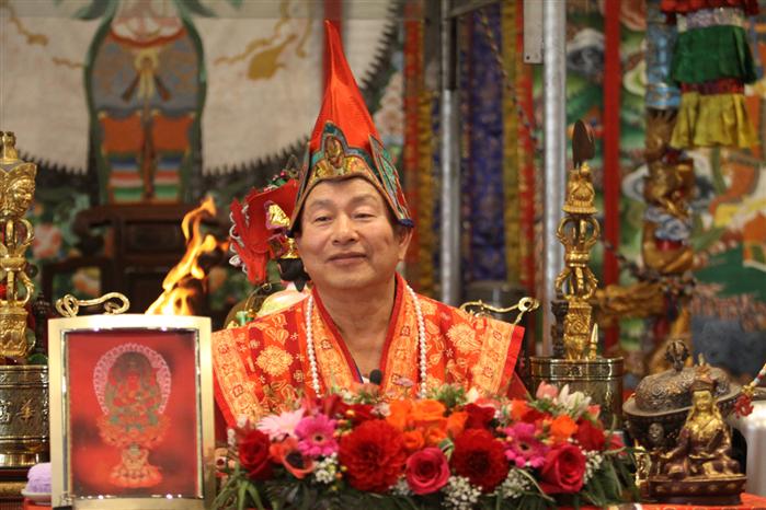 我們先敬禮傳承祖師,敬禮了鳴和尚,敬禮薩迦證空上師,敬禮十六世大寶法王噶瑪巴,敬禮吐登達爾吉上師,敬禮壇城三寶,敬禮護摩主尊「大敬愛尊愛染明王」。