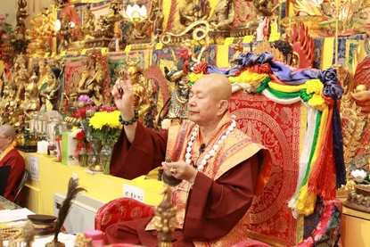 「如點金劑之教授」:用點金劑能令凡鐵變成黃金,皈依密教根本上師口訣實修,由灌頂開始,四灌頂配四壇城,修證後可以得到四身。受瓶灌頂,可修成應身佛;受紅白花灌頂,可修成報身佛;受無上密部觸灌頂,可修成法身佛;受大圓滿灌頂,可修成真身佛。