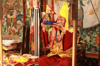 我們敬禮傳承祖師了鳴和尚、薩迦證空上師、十六世大寶法王噶瑪巴、吐登達爾吉上師,敬禮壇城三寶、敬禮今天護摩的主尊「摩利支天菩薩戰威金剛」。