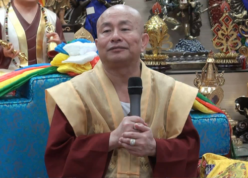 敬禮了鳴和尚、薩迦證空上師、十六世大寶法王噶瑪巴、吐登達爾吉上師!敬禮壇城三寶!師母、各位上師、教授師、法師、講師、助教、堂主、各位同門,瑤池精舍的住持,大家午安!