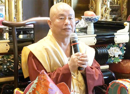 敬禮了鳴和尚、薩迦證空上師、十六世大寶法王噶瑪巴、吐登達爾吉上師!敬禮壇城三寶!師母,還有蓮楹上師、各位上師、教授師、法師、講師、助教、堂主、各位同門,還有貴賓議員女士、農委會總幹事,還有法鑼堂的堂主、副堂主,各位執事先生女士,大家午安!