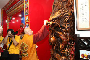 我們先敬禮傳承祖師了鳴和尚、薩迦證空上師、十六世大寶法王卡瑪巴、吐登達爾吉上師,敬禮三尊雷藏寺壇城三寶。師母,各位上師、教授師、法師、講師、助教、堂主,各位同門,還有我們的貴賓山口洋市市長Hasan Karman,三口洋宗教區事務長Supati先生,Selamat Siang!