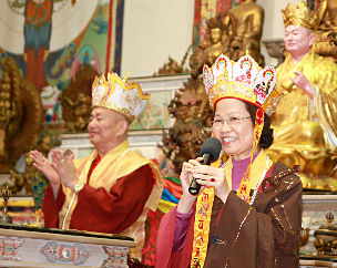 敬禮了鳴和尚、薩迦證空上師、十六世大寶法王卡瑪巴、吐登達爾吉上師,敬禮壇城三寶,敬禮護摩主尊愛染金剛明王。師母,各位上師、教授師、法師、講師、助教、堂主、各位同門,大家午安!(眾鼓掌)