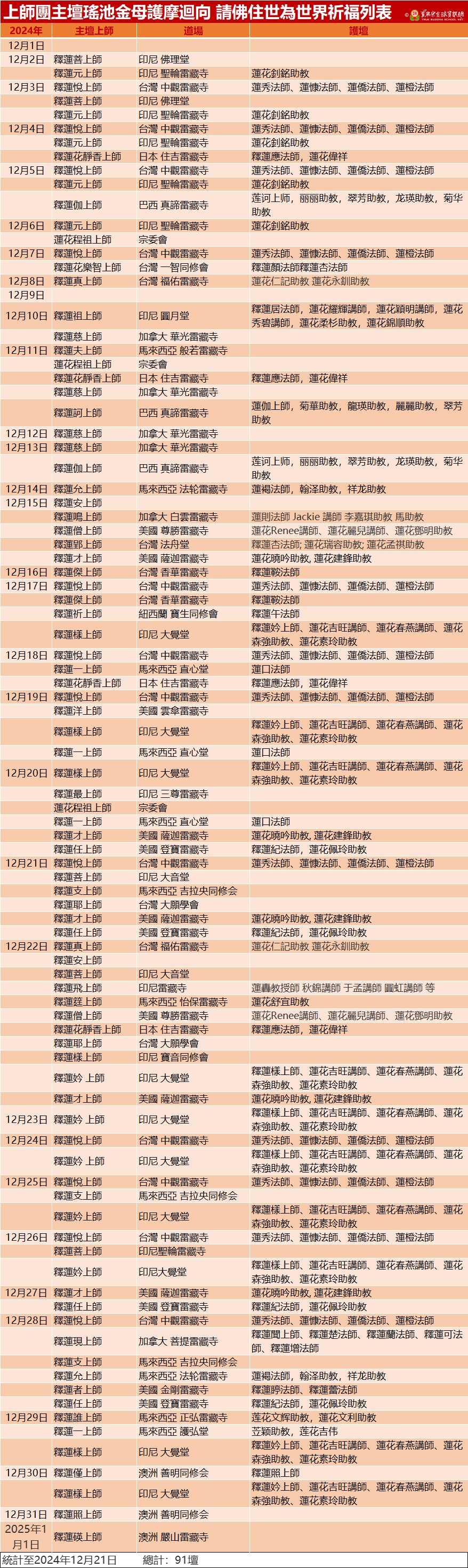 2024年12月真佛宗上師團請佛住世瑤池金母護摩日期和地點 (截至2024/12/21)