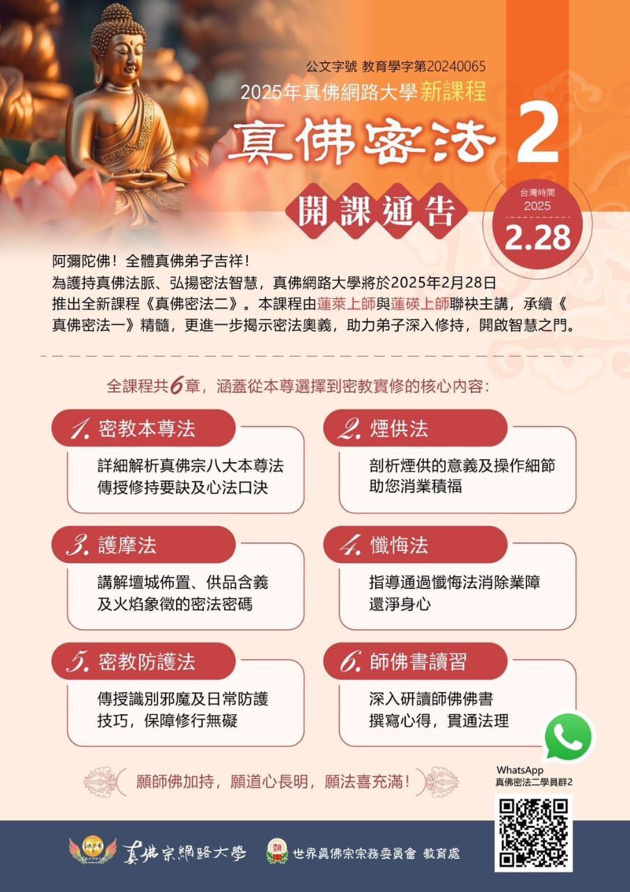 2025年真佛網路大學新課程【真佛密法二】精進打卡通告