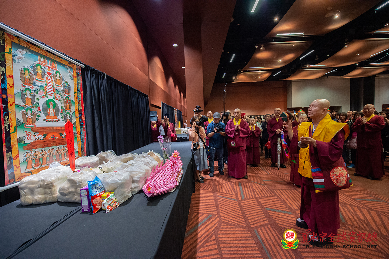 2019年8月23日晚上,西雅圖秋季大法會前夕,蓮生法王於梅登堡會議中心法會會場加持壇城。