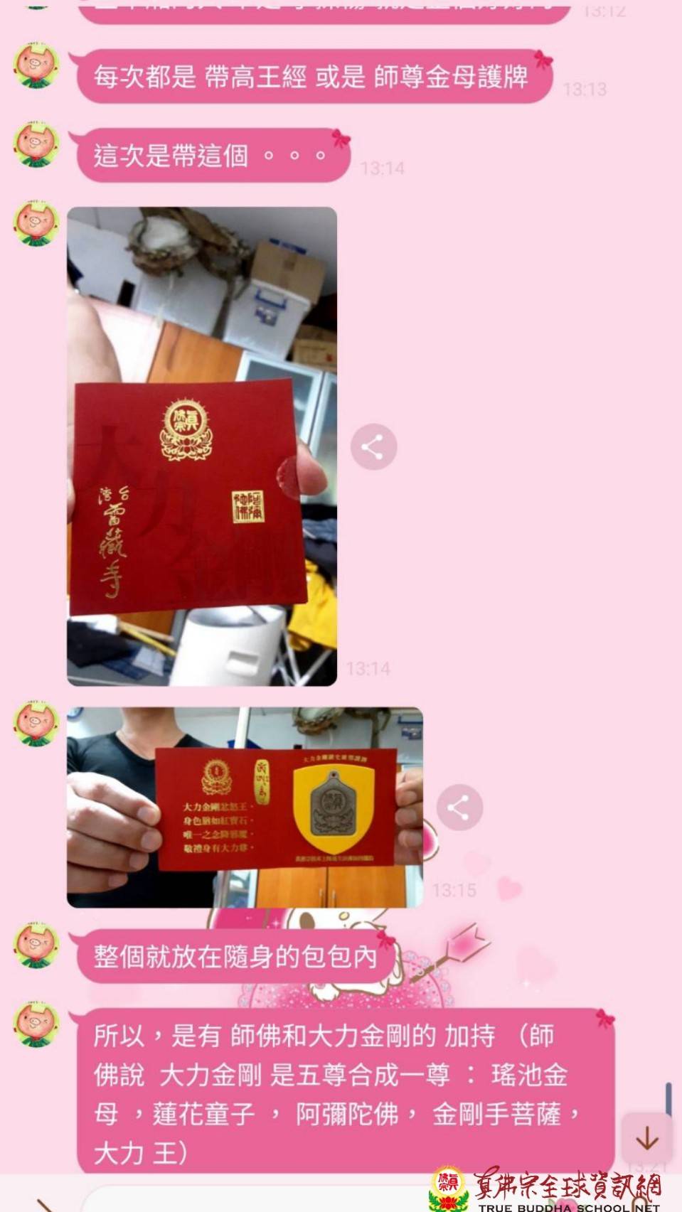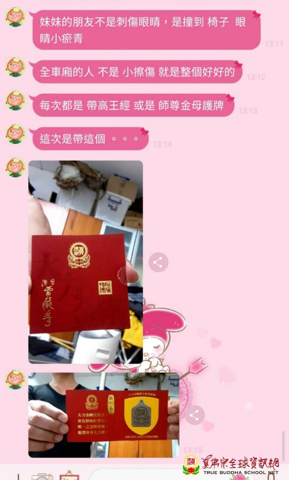 幸好,她的身上有帶着在 2019年大年初一師佛加持的大力金剛護牌,才能讓她與朋友都能夠大事化小。躲過這次的災難。