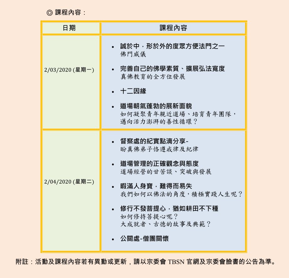 2020年2月 宗委會「各級弘法人員、各道場負責人 教育研習暨聯誼會」,正式上線接受報名了。