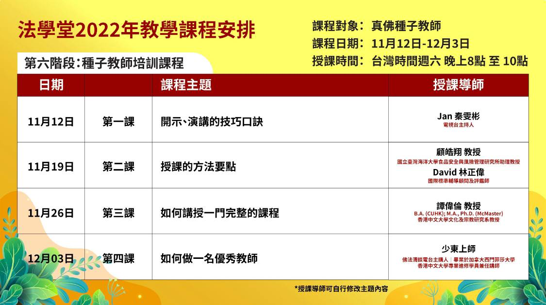 真佛教育團隊將聘請專業的授課老師,專門針對於「種子教師」進行授課技能、技巧,包括演講開示等全方位的培訓;培訓之後還將為大家提供實踐演練的機會,並請專家為大家點評指導,不斷提升。