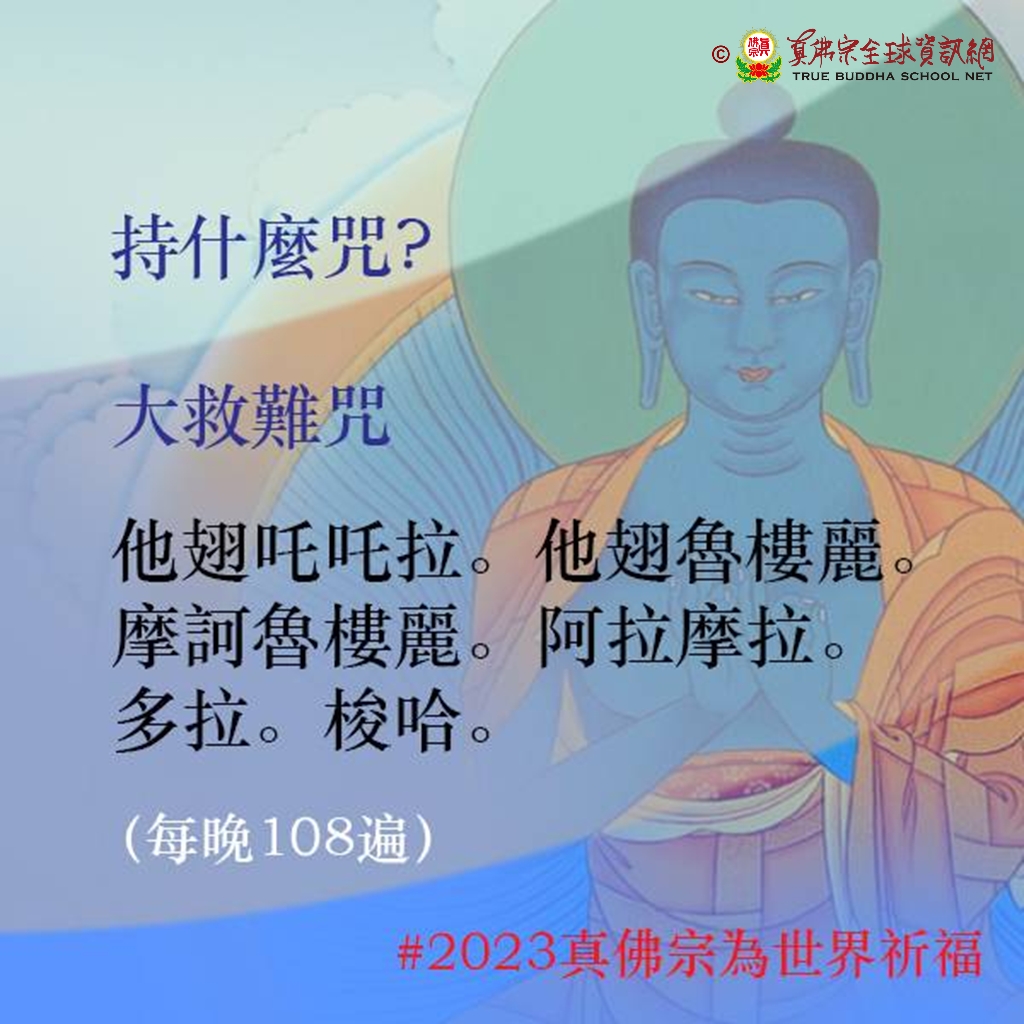 世界真佛宗宗務委員會呼籲全球真佛宗同門,共同持誦「大救難咒」,迴向「天下太平、種種災難的亡者安息、苦難者得到拯救;經濟復甦、人人安居樂業,身心平安健康。」