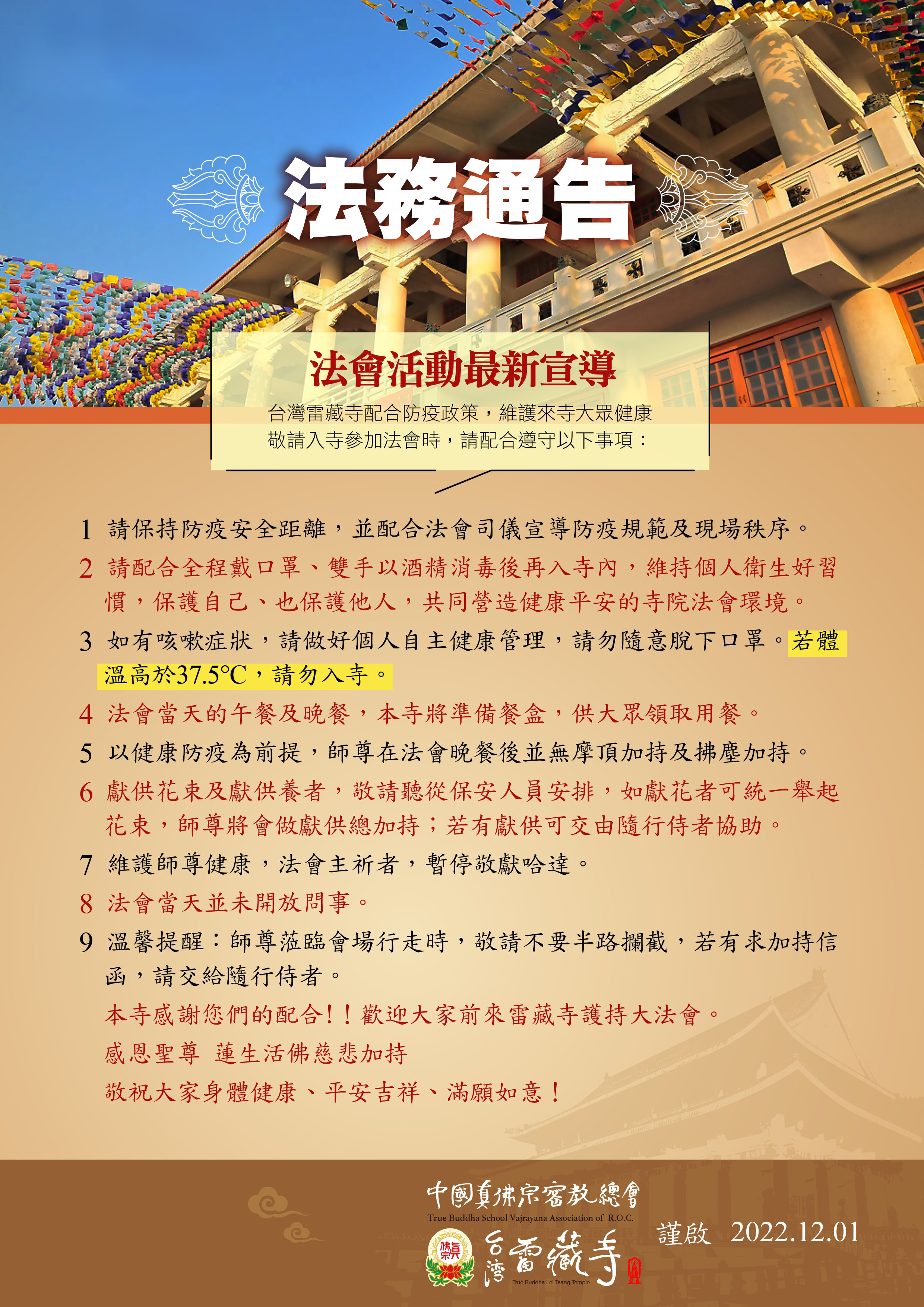 日期:2022/12/01 地點:台灣雷藏寺 10:00(台灣時間)