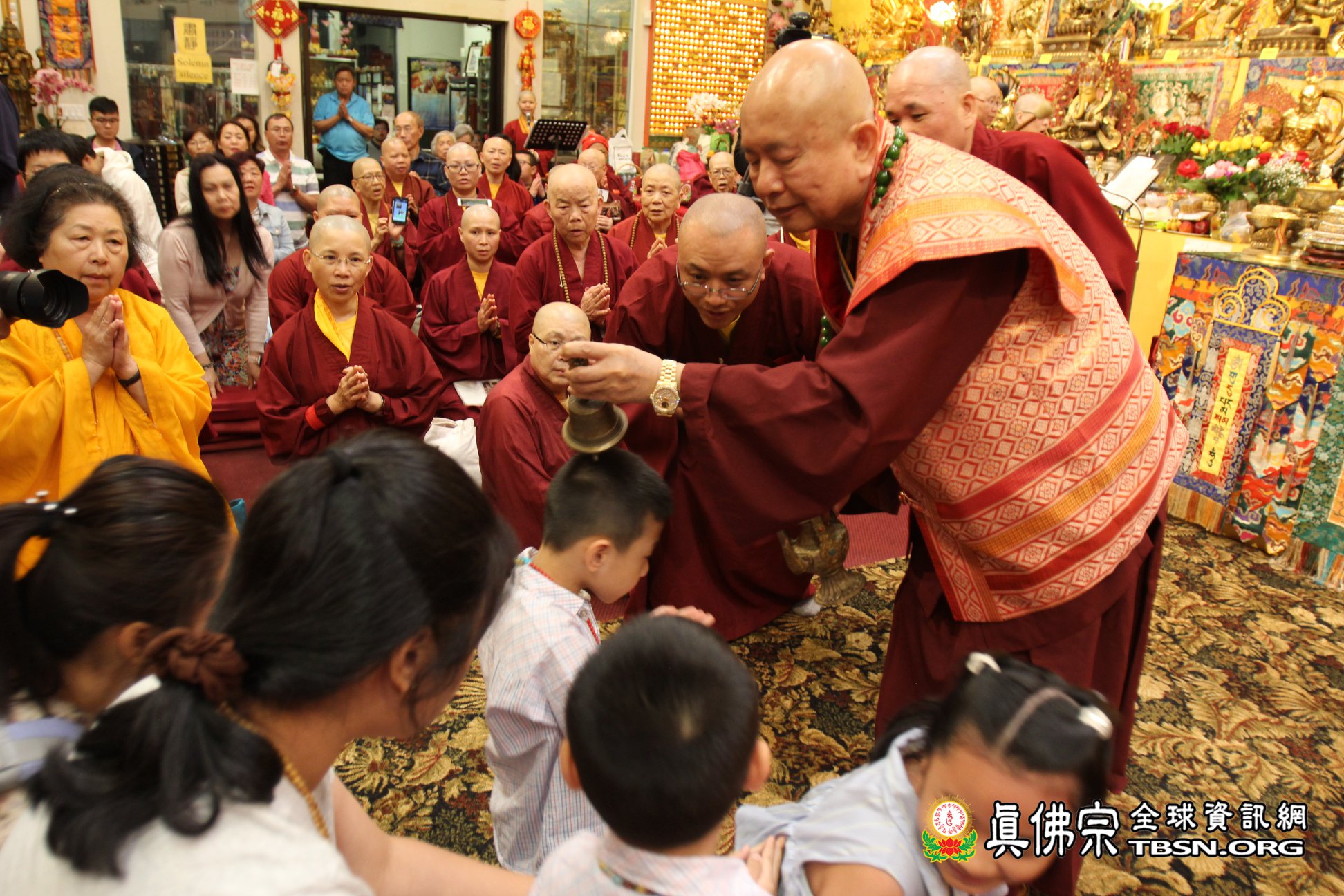 會後,聖尊為大眾賜授皈依灌頂、加持大悲咒水及佛像開光。離開雷藏寺前,聖尊還不辭辛勞為善信大眾摩頂加持。步出廟門,佛青闔家、佛奇闔家來到祖廟等候師尊、師母,現場勾勒出一幅天倫和樂的溫馨畫面,美麗的夜晚,瀰漫著溫馨的親情,為今晚劃上了最圓滿的句點。