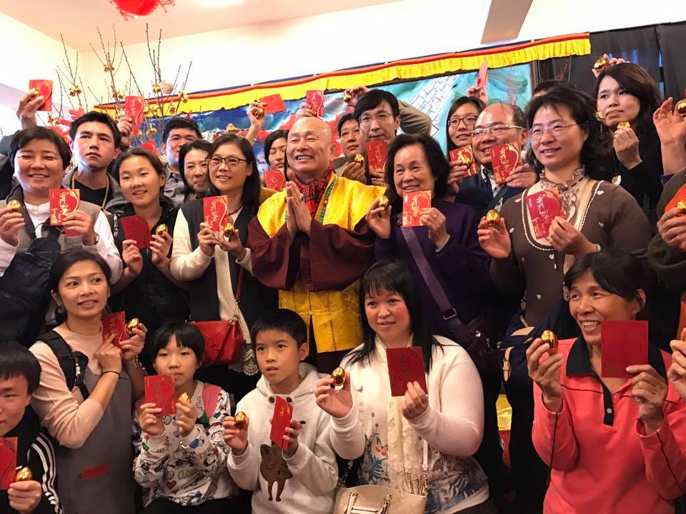 早上十點多,蓮生活佛即到台灣雷藏寺接受媒體採訪,發送大眾紅包和金雞蛋,還有和大眾一起寫春聯同樂,充滿新春年節的濃濃氣氛。