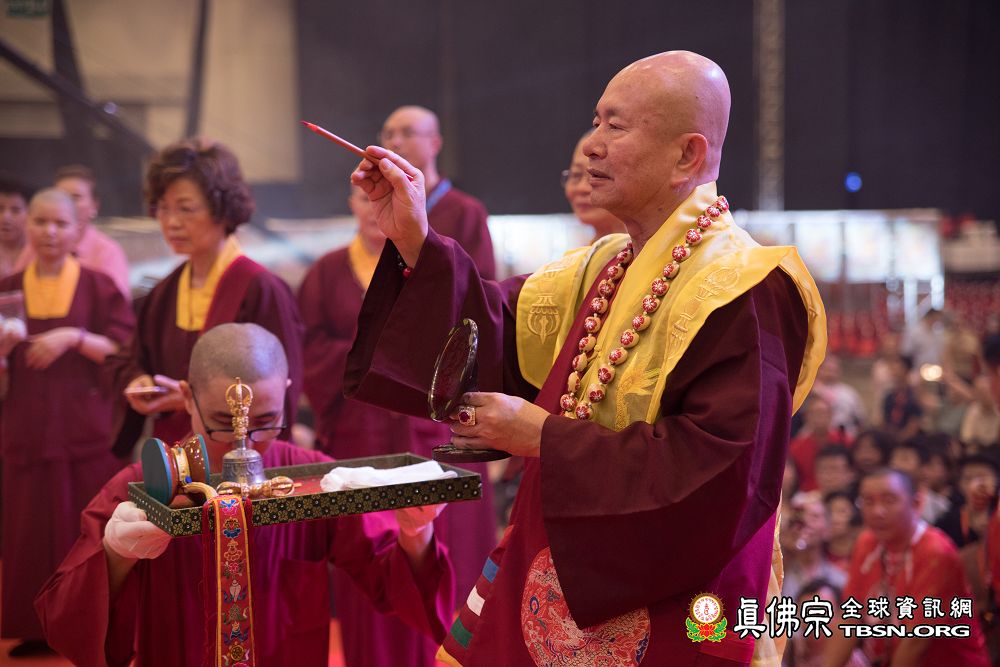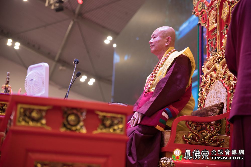 2018年12月7日晚上,蓮生法王蒞臨阿底峽尊者法會會場,為大法會壇城及殊勝無比的「真佛傳承噶當佛塔」開光,並加持義工們與會場群眾。