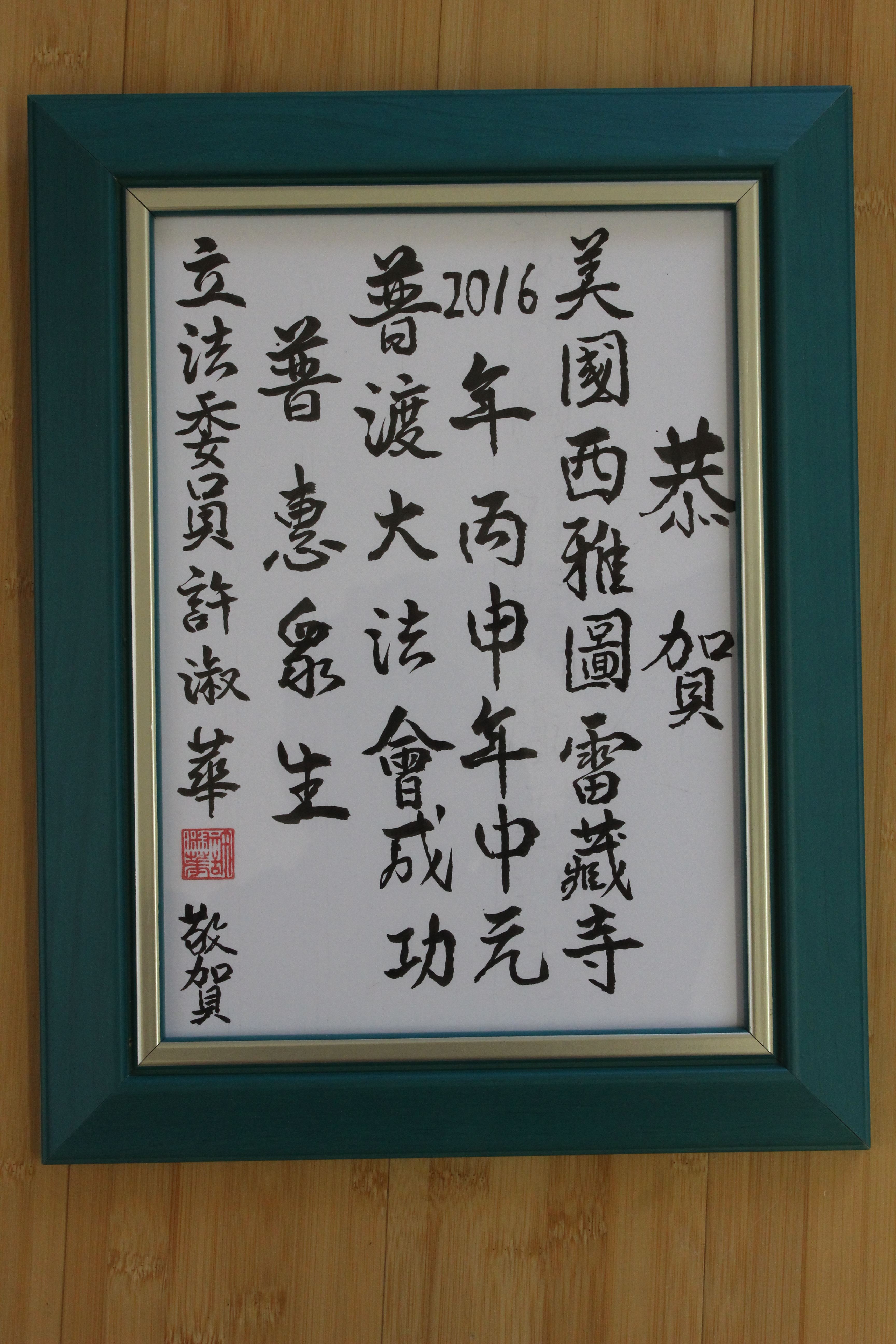 2016年8月27日蓮生活佛 盧勝彥法王於Meydenbauer Center(美國西雅圖梅登堡會議中心)主持「阿彌陀佛超度大法會」,首傳「大力金剛不共大法」,感謝與會貴賓名單及致贈賀電賀匾。