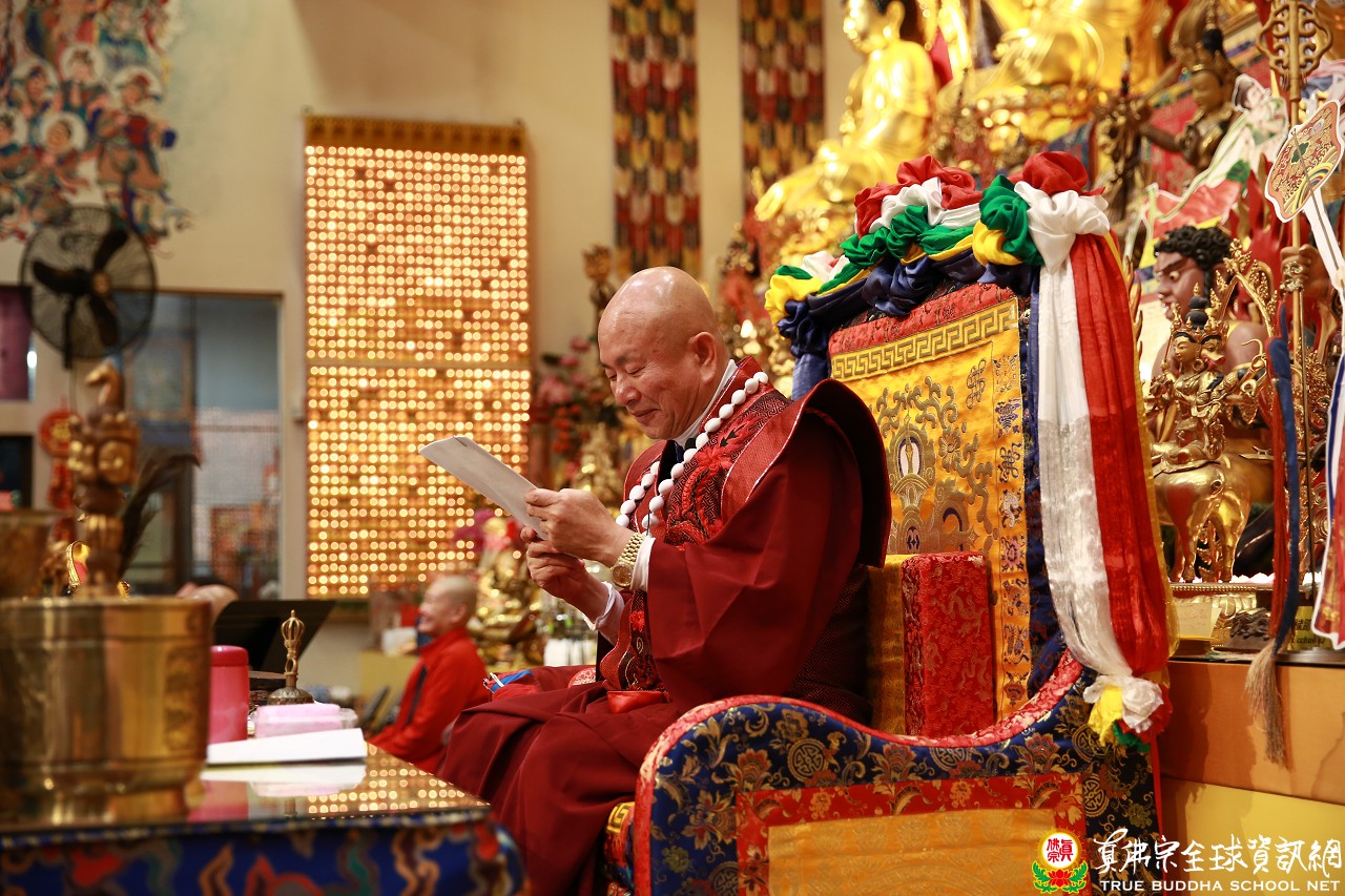 會後,聖尊為大眾賜授受皈依灌頂、加持大悲咒水及開光佛像。離廟前,聖尊為與會善信一一摩頂加持滿願。聖尊圓滿通達密法,完完全全了然於心,所以能精確闡釋深奧的道果法義,深入淺出的教導弟子們。一心禮敬根本傳承上師。