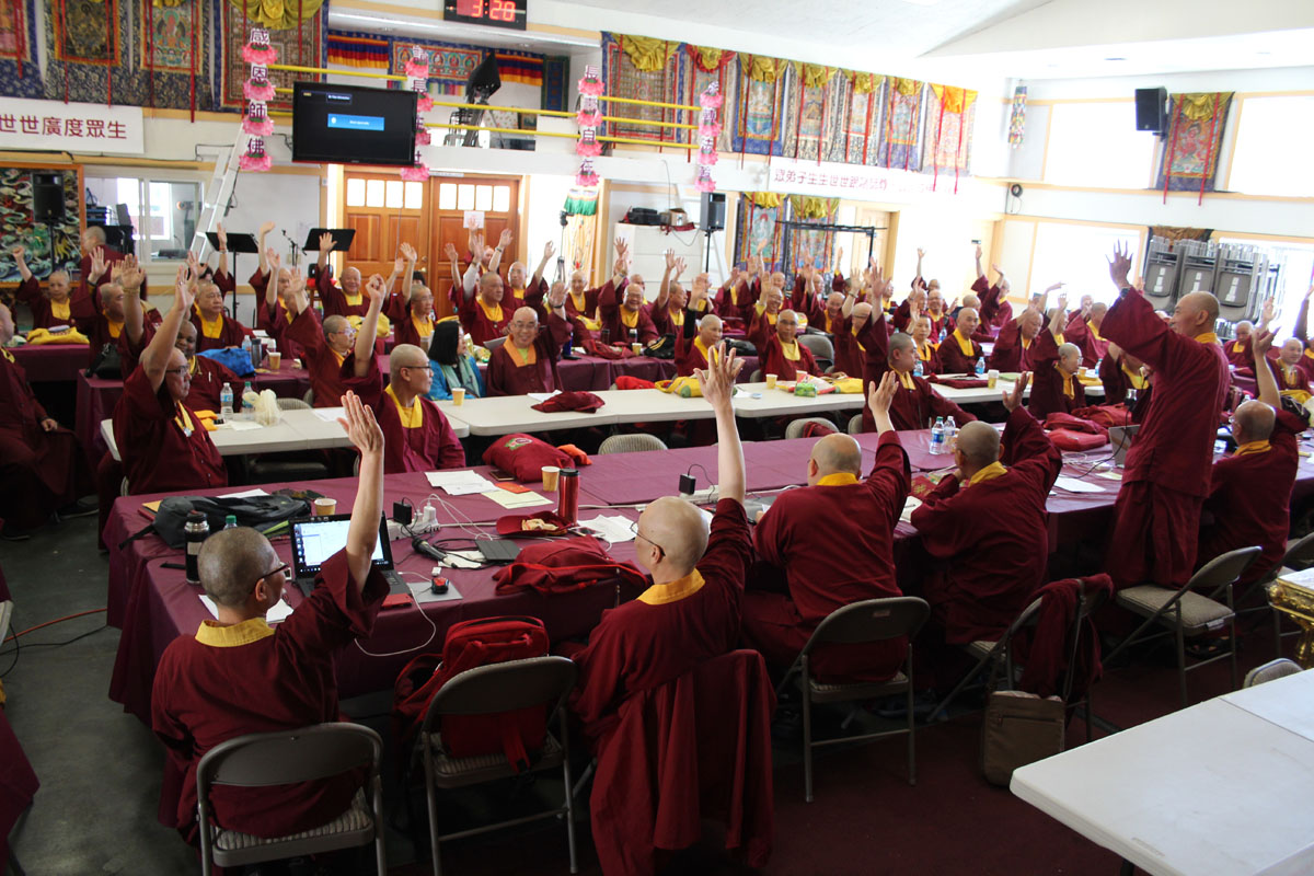 臨時動議則處理宗派弘法人員亂象問題,宗委會要如何強硬起來。在場的上師們達成共識,對違反宗委會規定,甚至違反戒律的弘法人員,要出信一級警告,約談,二級警告,屡勸不改,第三次就由眾上師公評決定處置方案。