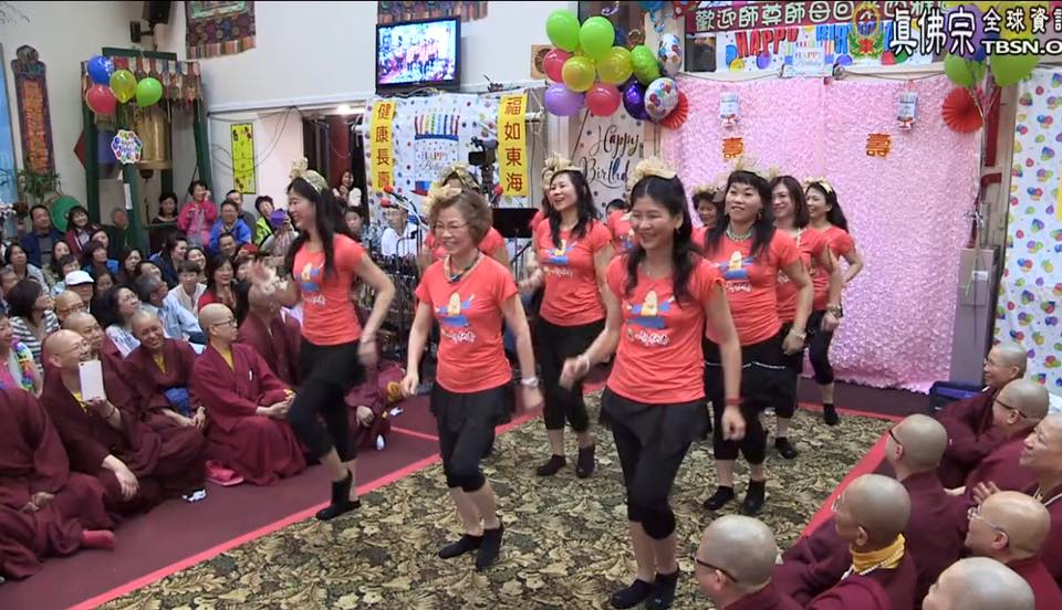 慶生晚會由師尊、師母一起切生日蛋糕揭開序幕,「西雅圖雷藏寺」住持蓮花德輝上師敬獻哈達後,當晚精彩節目則一一登場,包括蓮香師母所率領的「陽光舞供團」熱情舞蹈表演、西雅圖雷藏寺、彩虹雷藏寺十多位上師表演合唱「感恩的心」、「天音雅樂」的動聽合唱、巴西蓮訶上師帶領真諦雷藏寺同門表演「笑話劇」十 分精彩、蓮東上師與三位同門的喜劇、彩虹雷藏寺蓮彥、蓮喜上師等團隊表演…,還有專業的國際標準雙人舞…等,每一個表演都精彩有趣,活潑活力,特色十足!