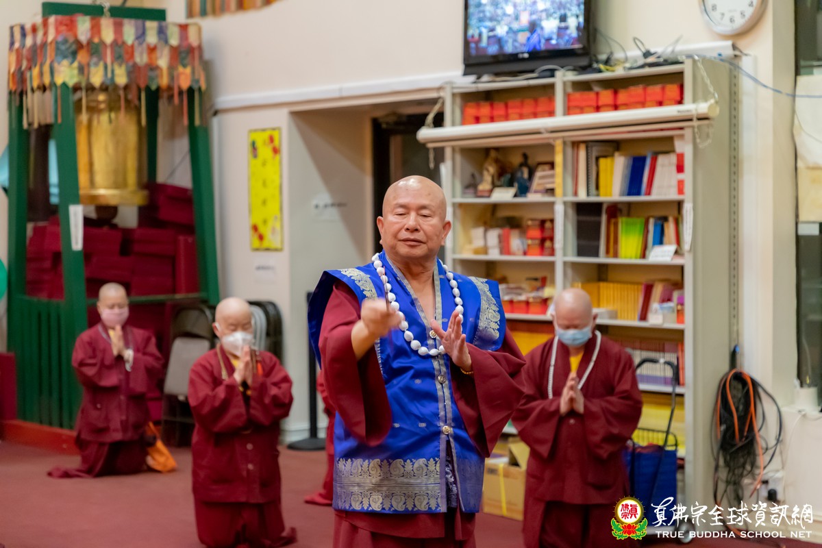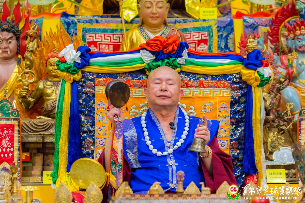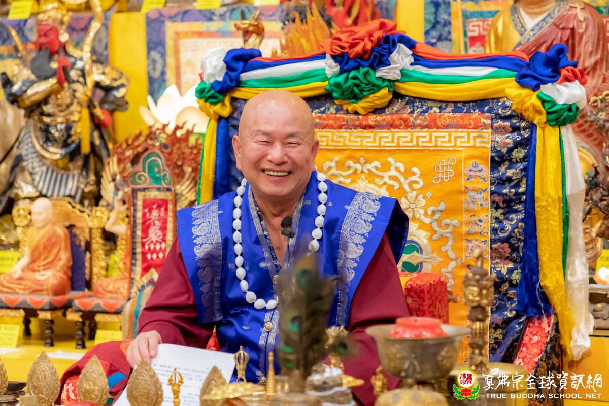 法王聖尊蓮生活佛,每一次開示之前,首先帶領大家頂禮歷代傳承祖師、壇城三寶、今晚同修的主尊藥師琉璃光如來。同修後,師尊宣布今年秋季大法會取消,改成西雅圖雷藏寺在寺裏舉行例常的週六同修活動、彩虹雷藏寺舉行例常的週日護摩法會。