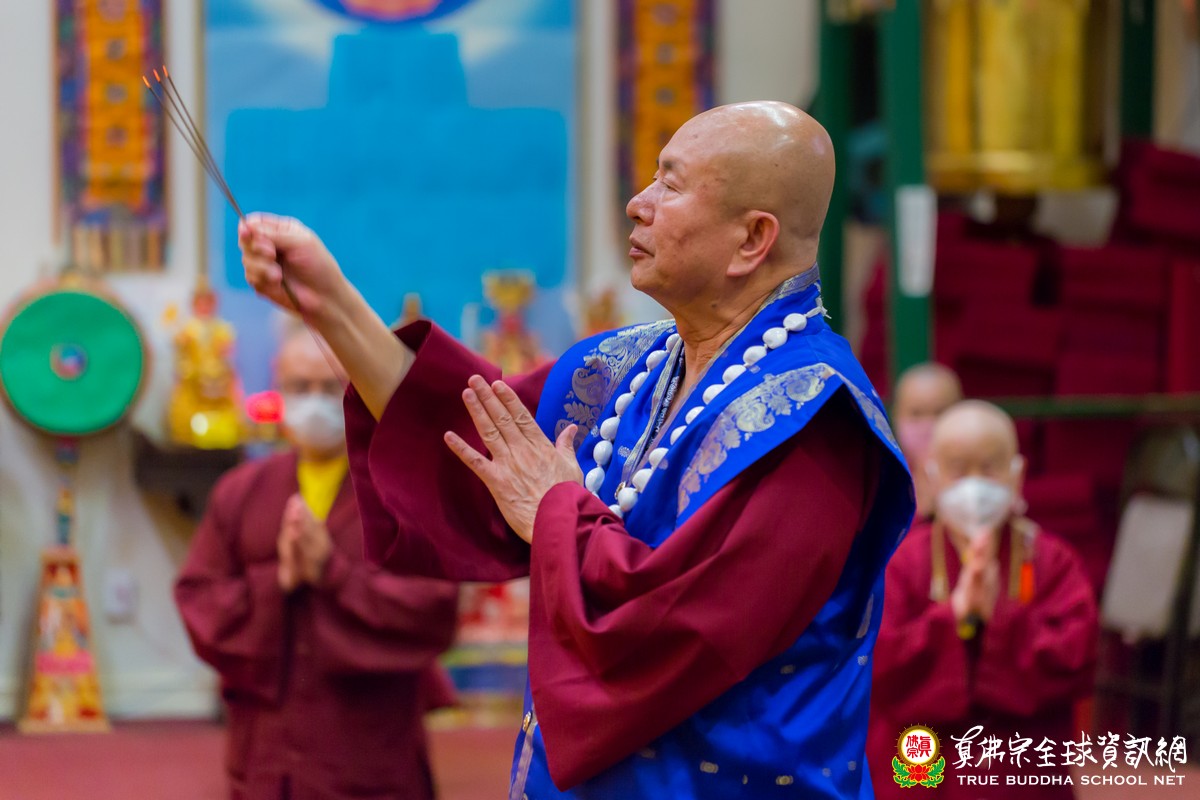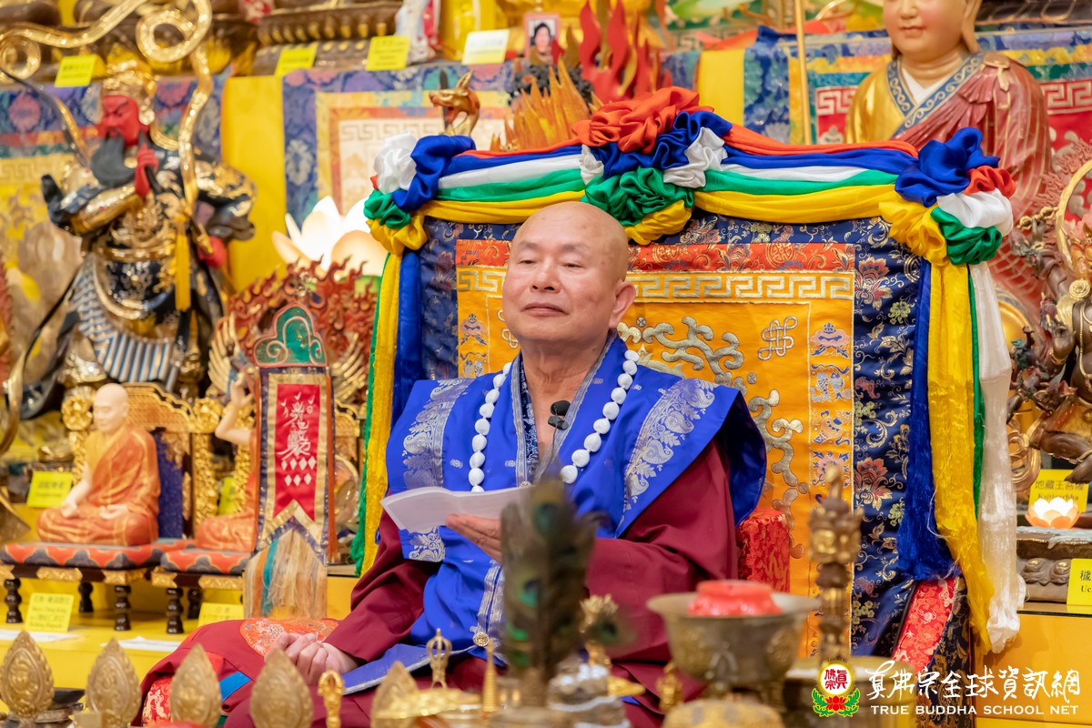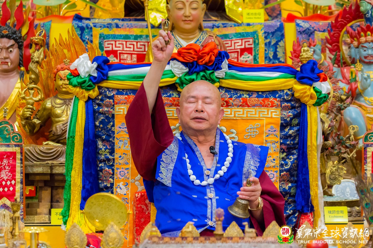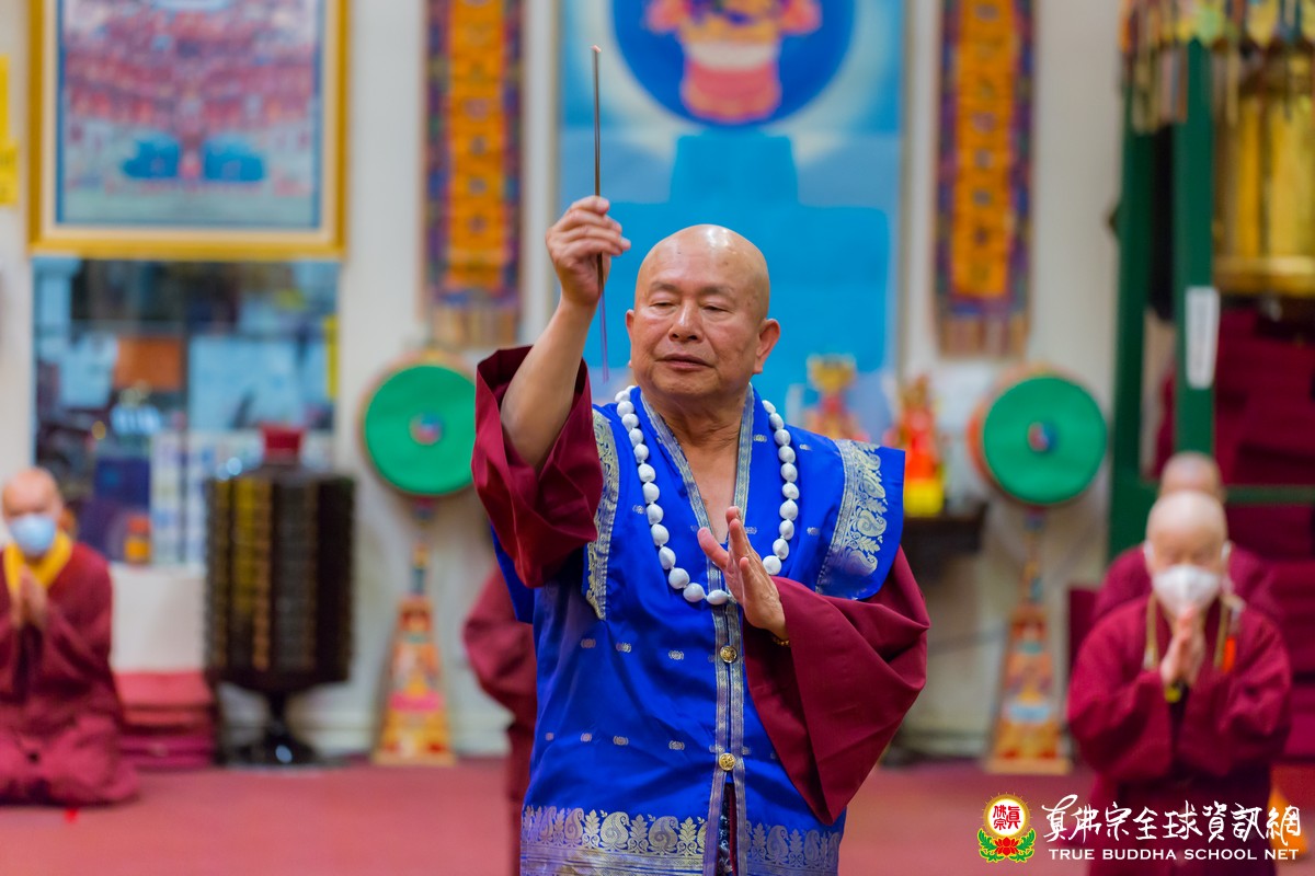 法王聖尊蓮生活佛,每一次開示之前,首先帶領大家頂禮歷代傳承祖師、壇城三寶、今晚同修的主尊藥師琉璃光如來。同修後,師尊宣布今年秋季大法會取消,改成西雅圖雷藏寺在寺裏舉行例常的週六同修活動、彩虹雷藏寺舉行例常的週日護摩法會。