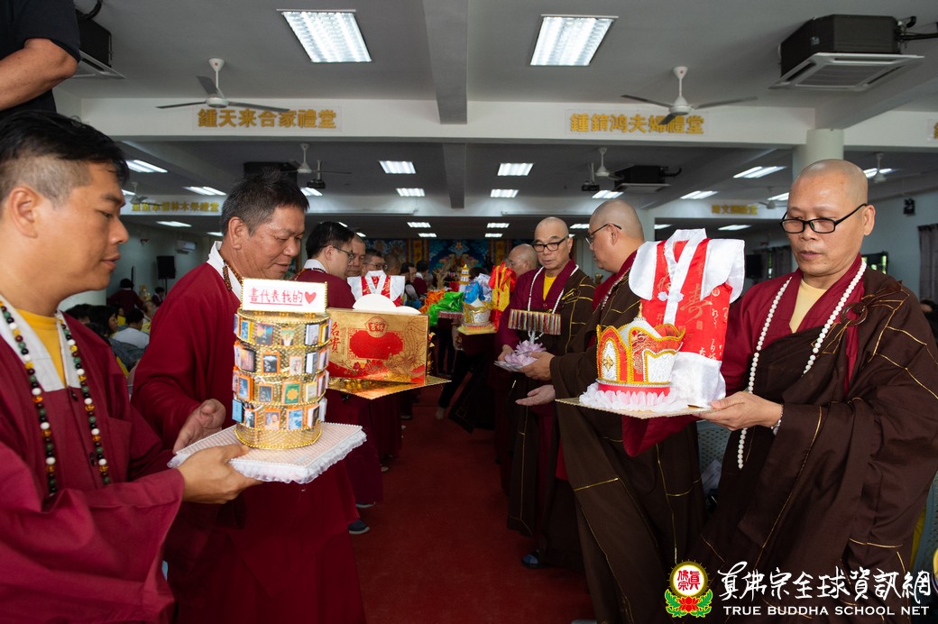 2019年11月3日下午,於真佛宗馬來西亞平和養老院《本然教育大樓》,世界真佛宗宗務委員會主辦,馬來西亞真佛宗密教總會協辦之「大白蓮花童子息災祈福增益超度護摩法會」圓滿舉行。宗委會督察處處長釋蓮僧金剛上師為主壇上師,其餘宗委會處長和本宗上師團護壇,法師團及來自世界各地及馬來西亞同門善信踴躍護持。當日的護摩供品可謂琳瑯滿目、五花八門、應有盡有,全都出自同門的巧思妙手,宛如一盤盤藝術品,令人讚歎不已,大家發自內心的供養,感動人天。