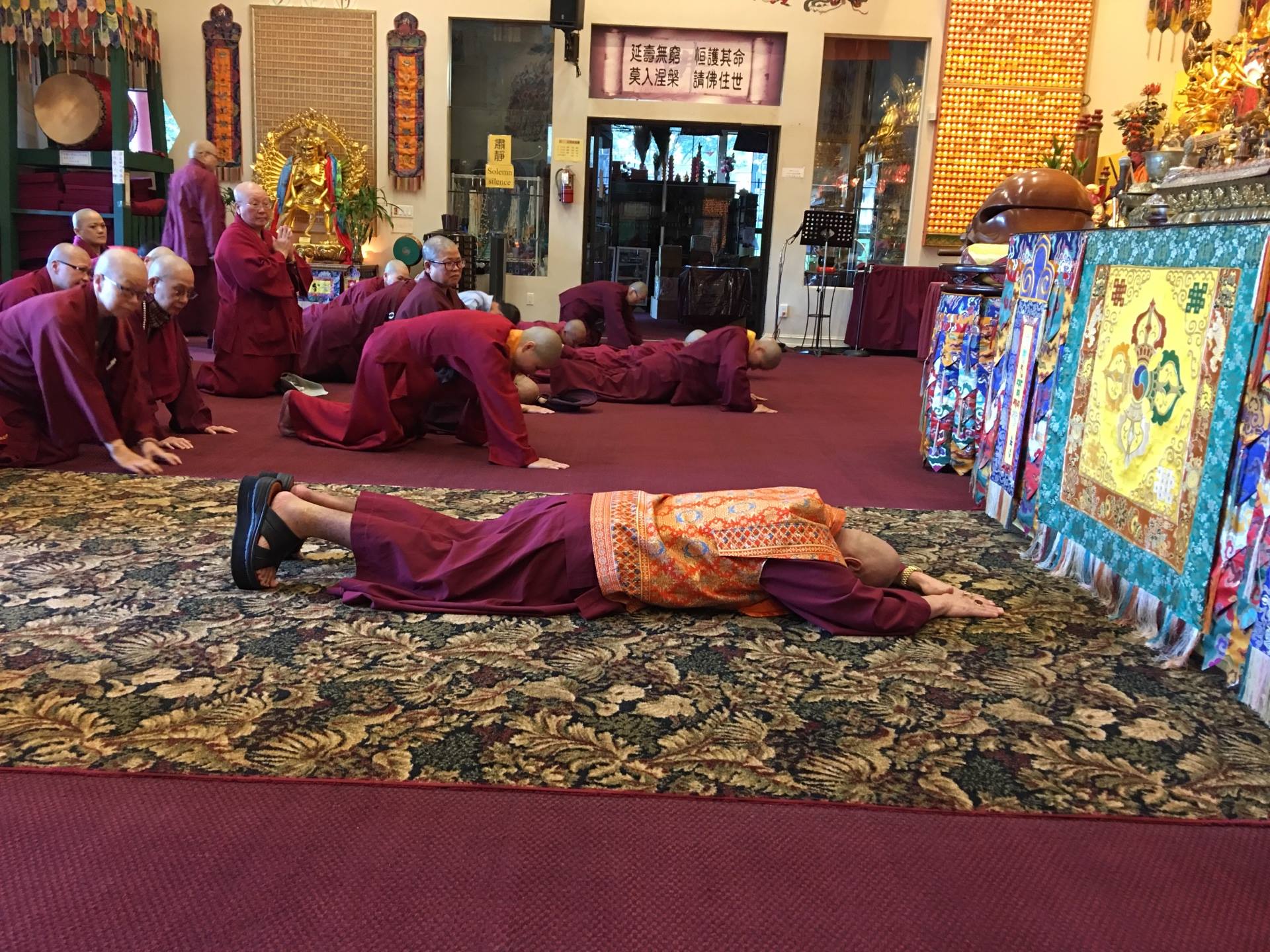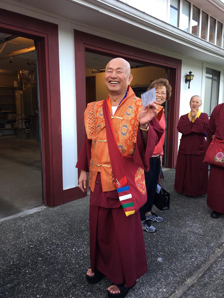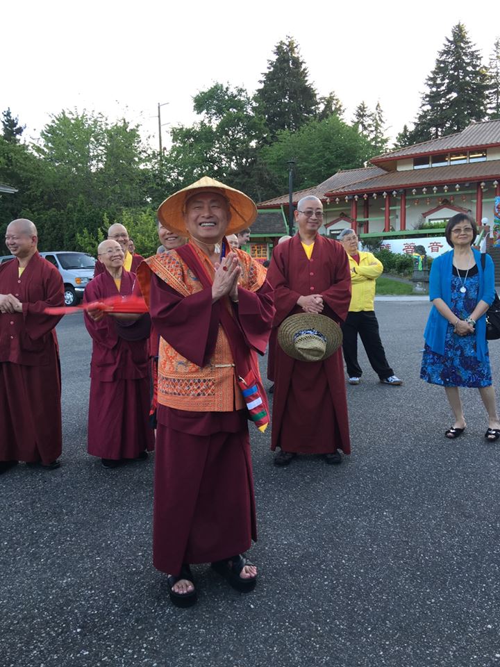 午餐後,師尊、師母一派休閒和輕鬆的與大家話家常,師尊還頻頻仰望藍澄澄的天空,說著︰ 這是只有在西雅圖才能看得到如此清爽透徹的藍啊 !! 晚餐時分,師尊經過了一個下午的休憩,精神滿滿的步出密苑,到雷藏寺大飯店用餐,師母還特別說;這是師尊自出院後,吃的最多的一天呢 !! 飯後,師尊、師母一起到祖廟禮佛,再與弟子們在廟前的廣場散散步,與大家說說笑笑的,時不時都可以聽到師尊開懷的笑聲,神情愉悅極了 !!師尊日後的健康和心情,祖廟上下皆齊心協力的共同把關。接下來的日子,我們也會盡量讓全球的弟子,分享師尊、師母日常生活精彩的點滴,讓我們大家的心也能同步的『與佛同在』。