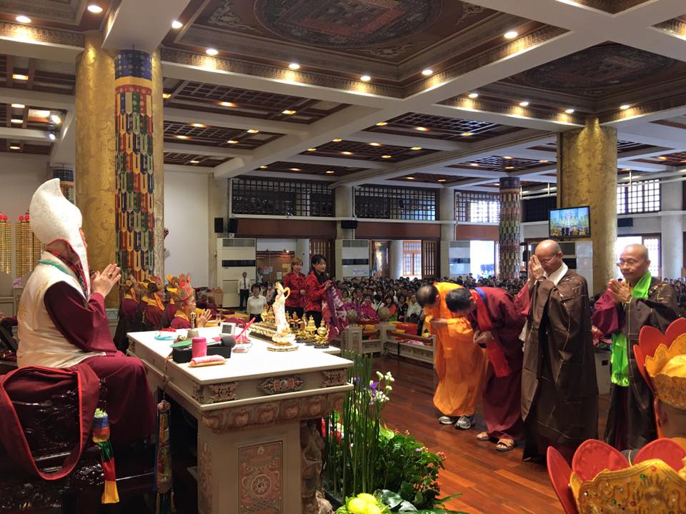 法會前,由蓮真上師代領〈福佑雷藏寺〉代表,敬向蓮生活佛請法儀式,圓滿吉祥。