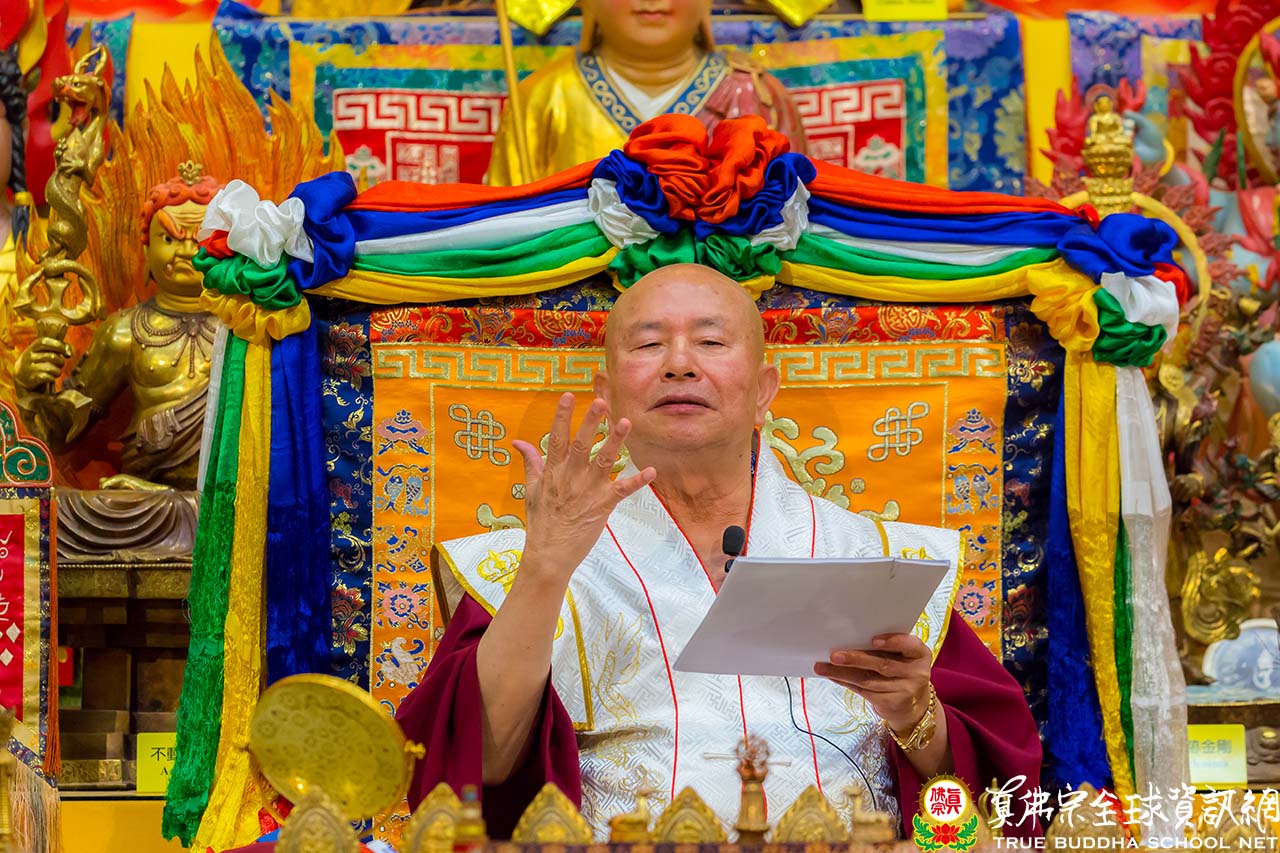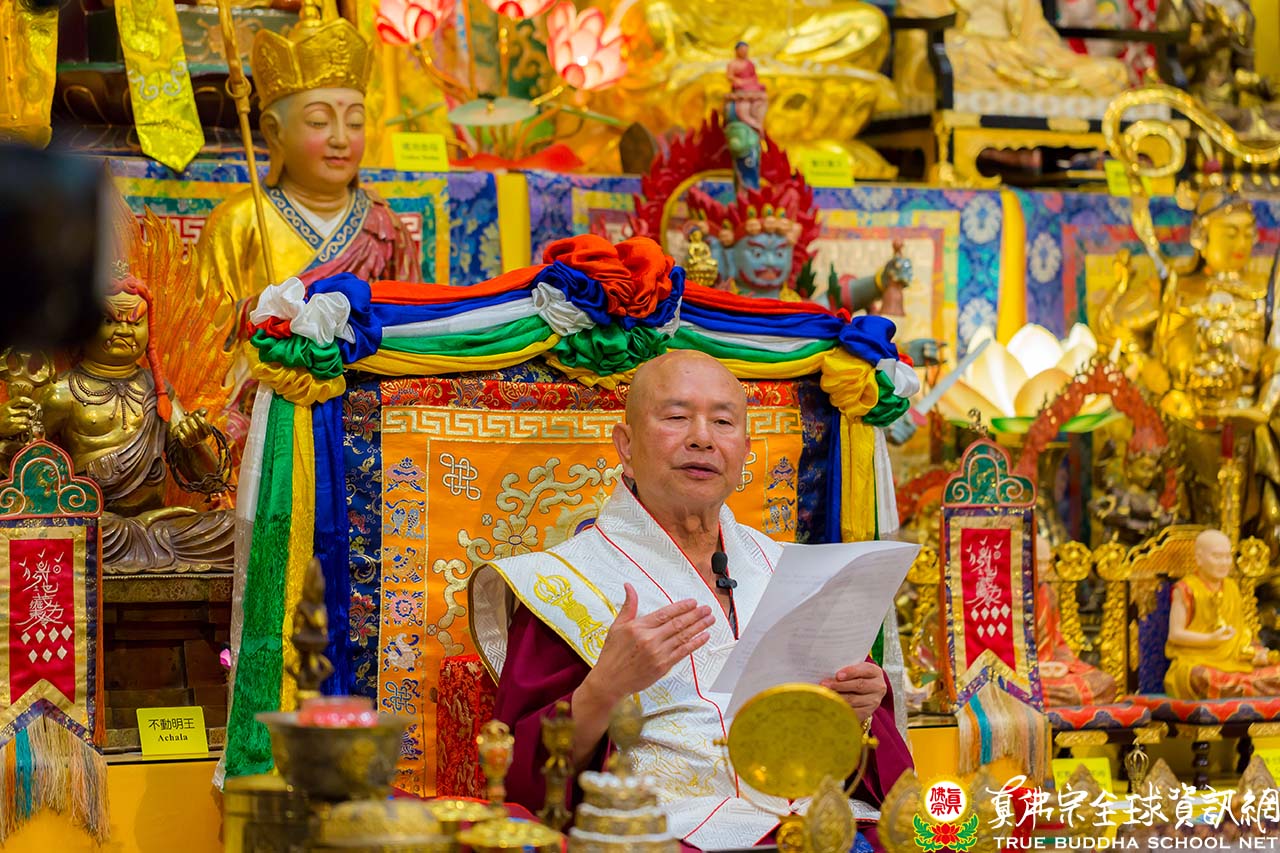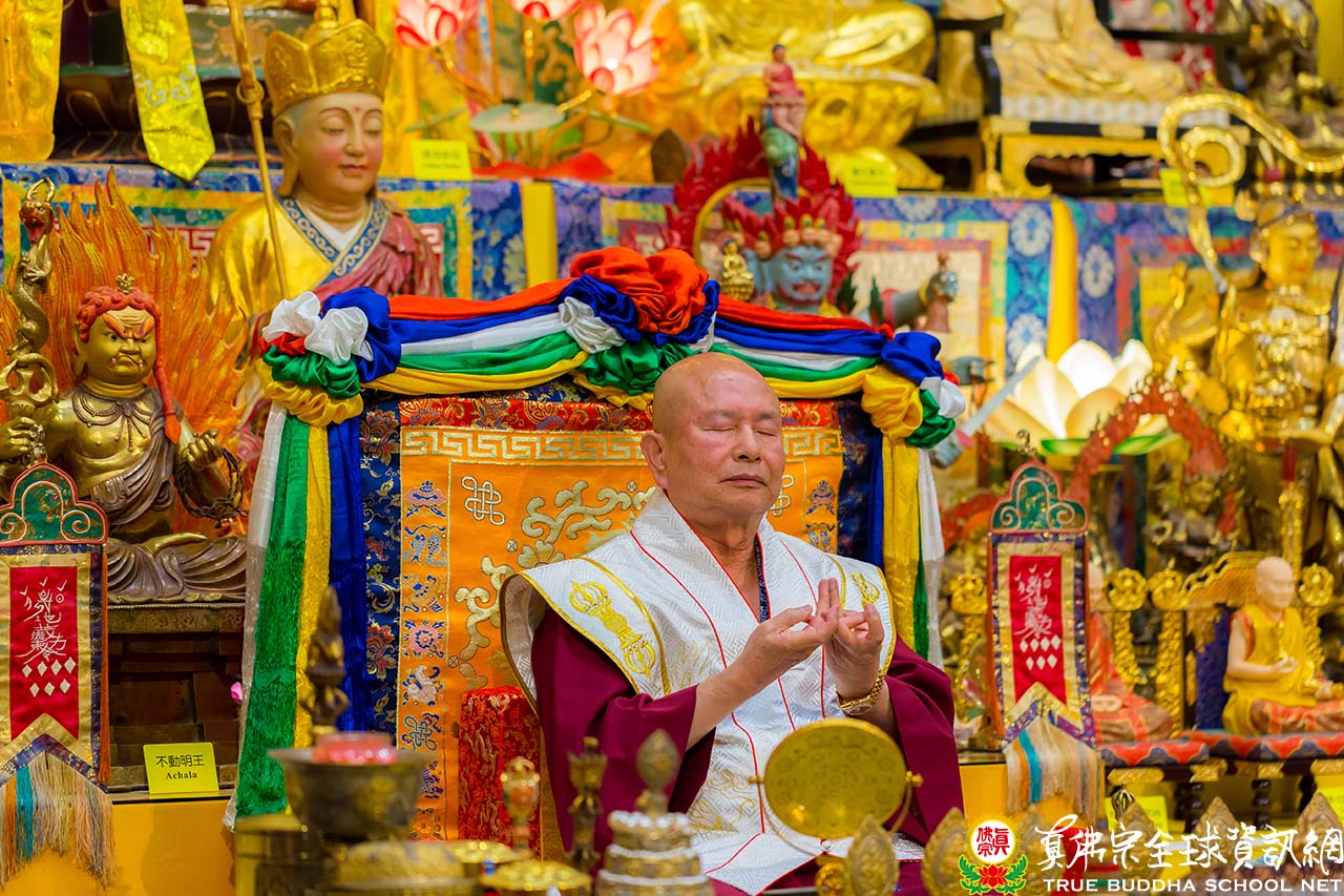 熱烈掌聲中,師尊坐上了法王座,帶領現場與網路上的所有弟子們,同修了一壇莊嚴肅穆的蓮花童子本尊法。