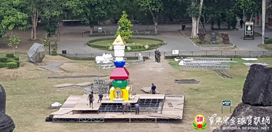 【宗委會印尼雙聖交輝】2019-11-21 時輪壇城的建立 2019年11月21日,真佛宗世界宗委會開始建立位於印尼婆羅浮屠前的時輪金剛壇城。婆羅浮屠上的佛像遙望時輪金剛壇城,見證這歷史性的一刻。