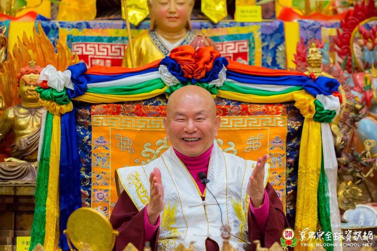 師尊帶領大家敬禮傳承祖師、壇城三寶、同修主尊觀世音菩薩後,用各種語言向大家親切問好!