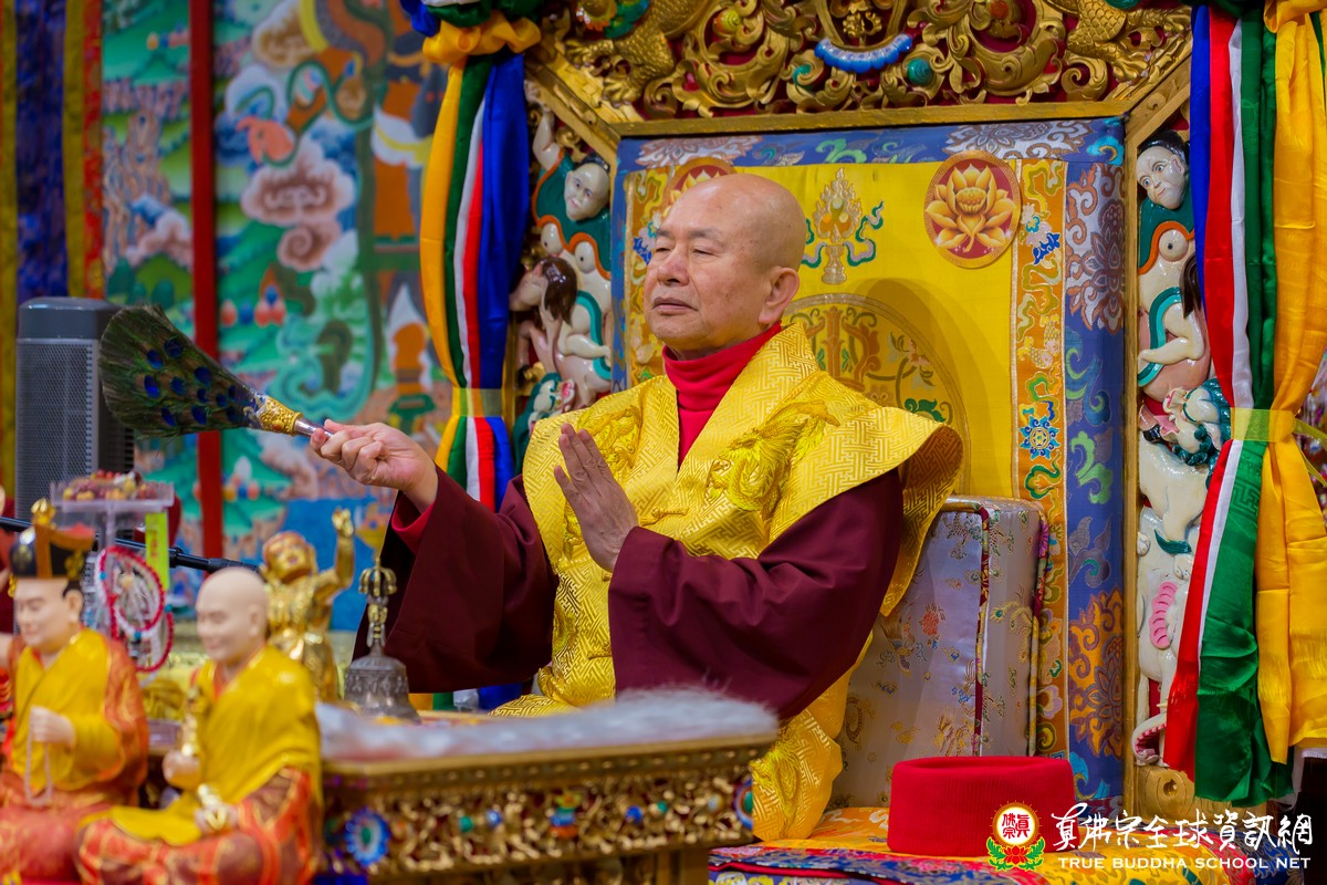 護摩法會隆重進行,開示時法王先通知大家12月20日下午3點是「大威德金剛」護摩法會。大威德金剛是文殊師利菩薩的憤怒尊,是文殊菩薩進入閻摩法王的身而化顯出來的。祂的本地也是阿彌陀佛。所以日本東密,也認為大威德金剛是阿彌陀佛的憤怒尊。藏密四大教派的黃教,最高的法是大威德法。大威德金剛也是五大金剛法表現最為出色的金剛法。