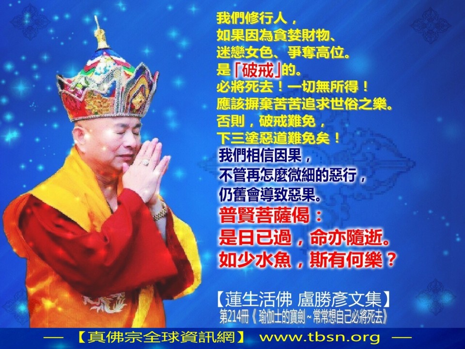 請佛住世長壽佛心咒 「一生一咒」800萬遍上師心咒活動,從今年師尊的佛誕日正式啟動,請參加者到TBSN官網以下鏈接登記資料: 每持滿十萬遍上師心咒者,宗委會將把名單呈給師尊加持。每持滿一百萬遍者,將列名護摩法會功德主,資料請師尊主壇護摩法會時下護摩爐。