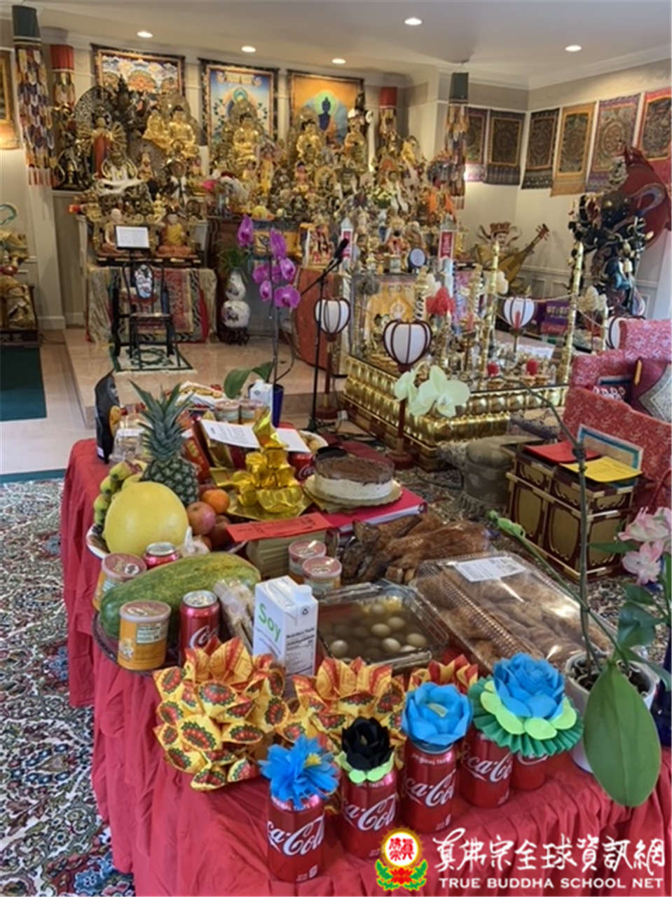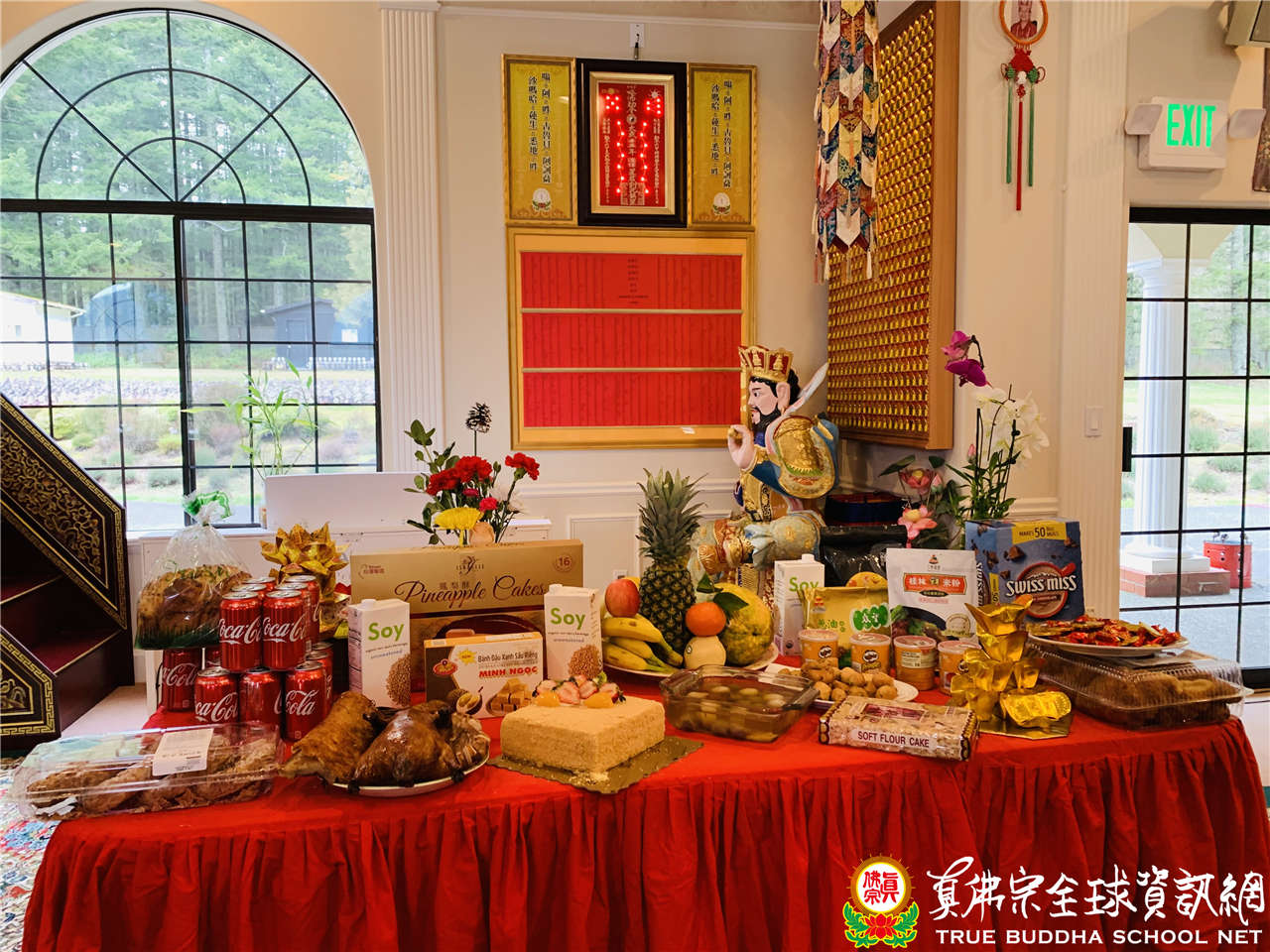 帶著這一切的感懷,彩虹雷藏寺的所有上師,法師為送迎太歲準備了非常豐盛的供品。香花甜點,湯圓炸果,燒臘滿盤獻供,誦經持咒吟唱。感謝聖尊蓮生活佛,諸佛菩薩,庚子年盧超太歲星君對安奉弟子們過去一年的護佑,有惊無險,平安度過。迎請辛丑年湯信星君臨壇鎮守,祈願在新的一年,護佑安奉者,牛年大力,乘風破浪,大吉大利,吉祥安康。