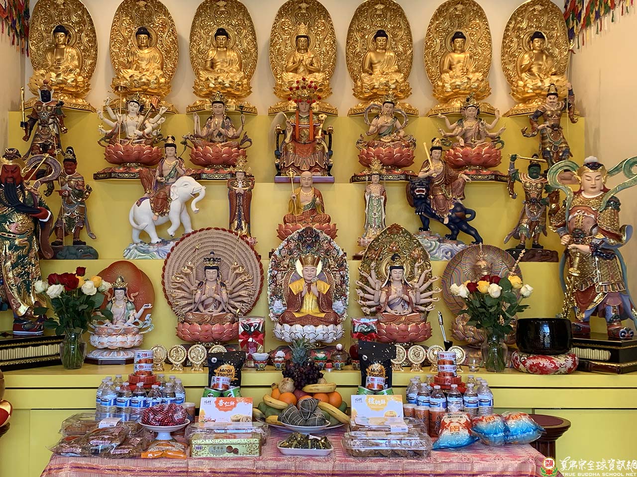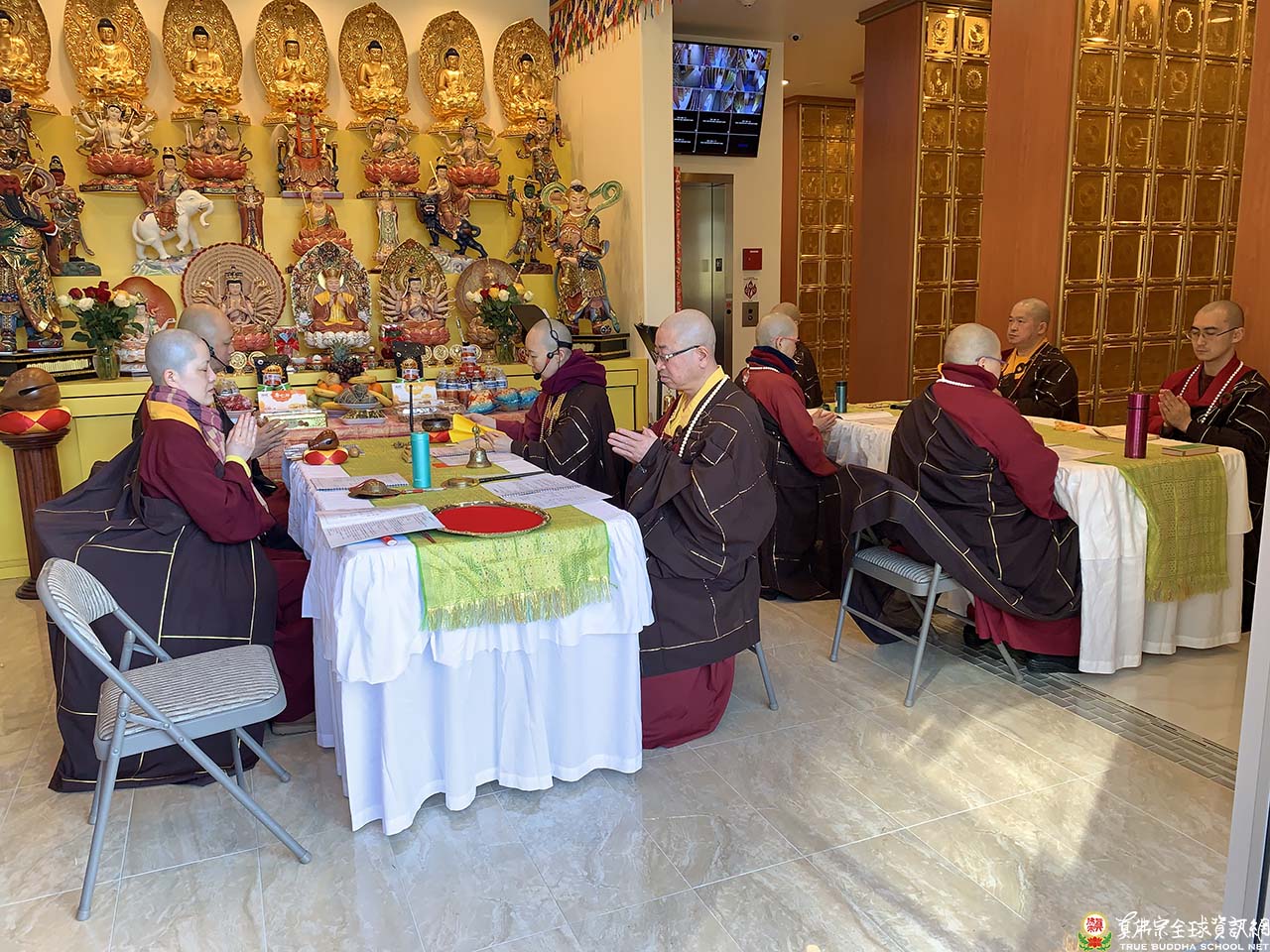 彩虹雷藏寺為此次的白事誦經儀式,準備了豐盛的供品,擺設佈置莊嚴的牌位壇城,更準備了諸多的金紙、蓮花、法船...等。下午兩點整,眾上師、法師專心一志地為安靈在『雙蓮境界』靈骨塔的往生者及所有報名之先人,舉行白事誦經儀式,梵唄音聲整齊肅穆,法音繞樑、不絕於耳!