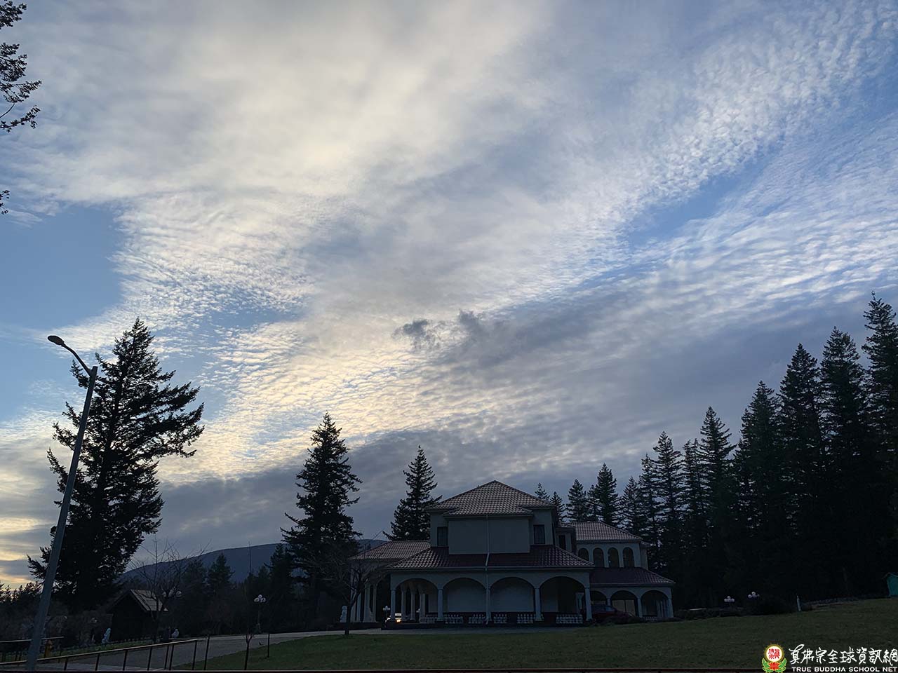 2021年3月1日(星期一)是農曆正月十八,春回大地的三月份,當天大日遍照,如同祥光萬丈的天空,籠罩在大日下的彩虹雷藏寺顯得格外的金光燦爛,令人法喜充滿!在彩虹雷藏寺每天千變萬化的美景,每每都會令人嘆為觀止,百看不厭。師尊、師母每次都讚嘆這是人間仙境,住在這裡的人就如同住在仙境裡,有風水地靈的寶地加持助益下,天然寧靜的彩虹雷藏寺就成了修行好道場。