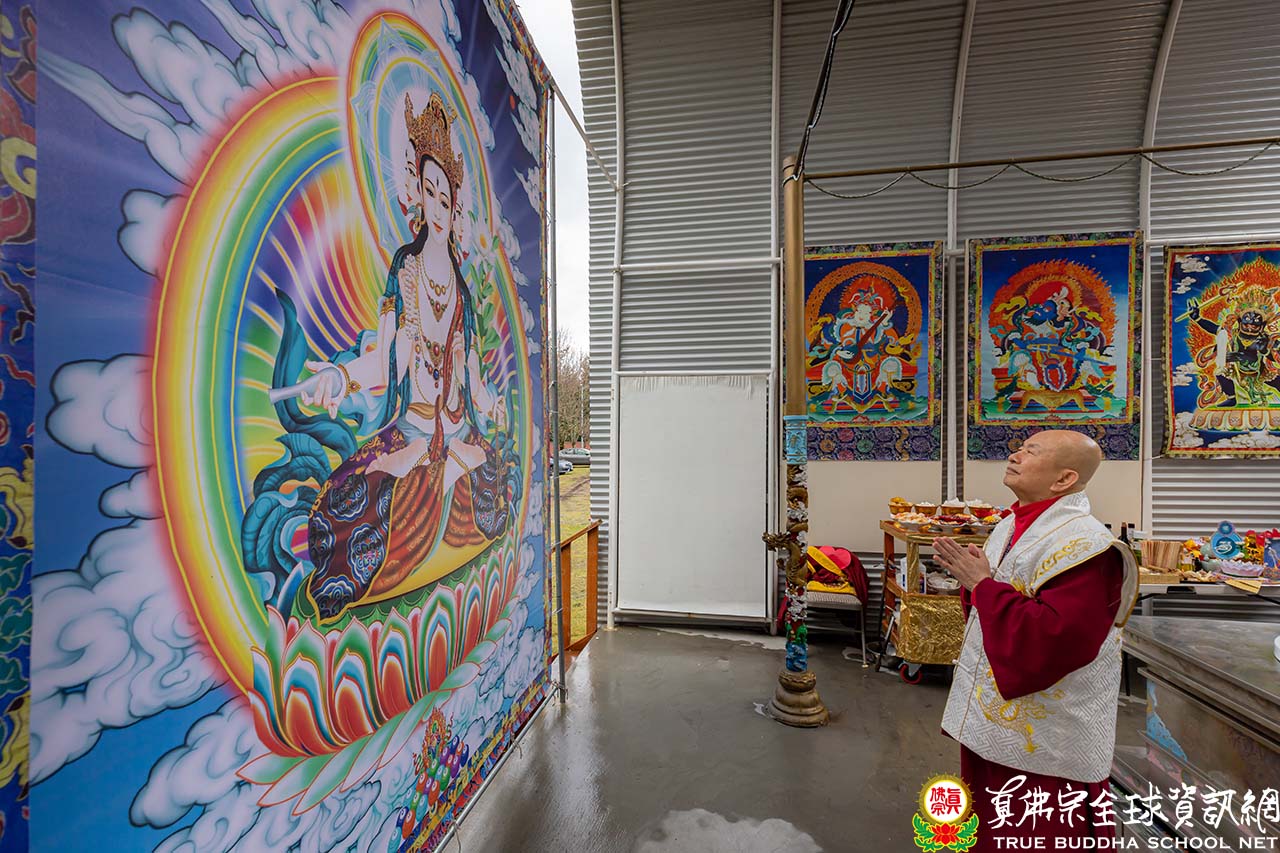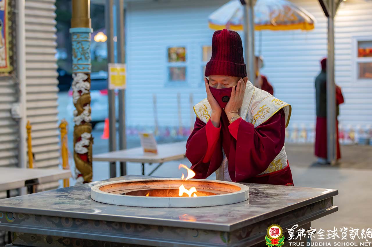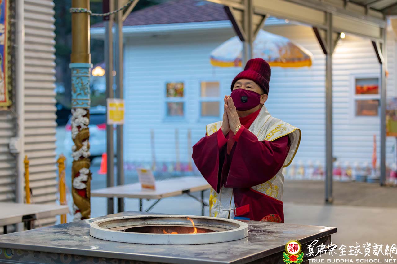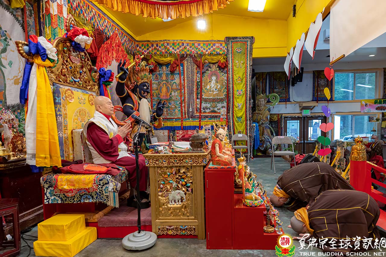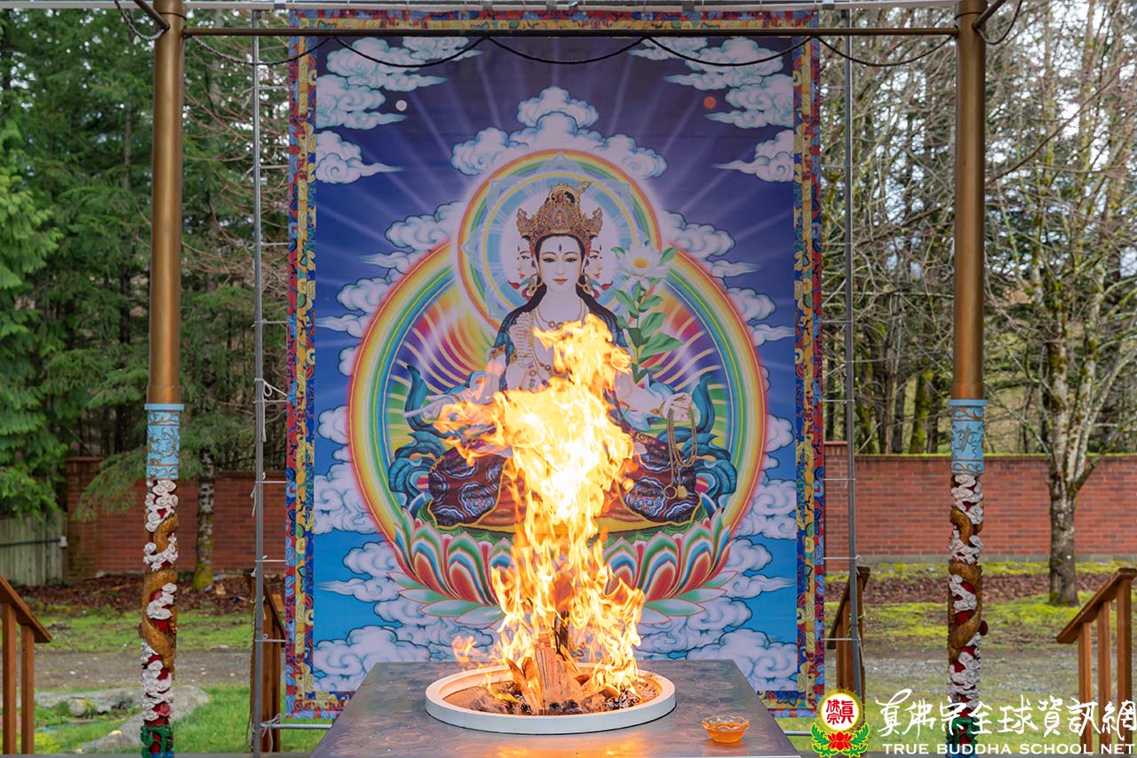 護摩後,彩虹雷藏寺與西雅圖雷藏寺代表宗委會帶領全球佛真佛弟子請佛住世,這感人至深的儀式動容了世界,弟子們懇叩世尊:長住世間無量壽、請轉無上妙法輪、三寶光明永不離。佛前立足來勸請,請佛久住於世間,憫念眾生苦無量,常令正法度群迷。