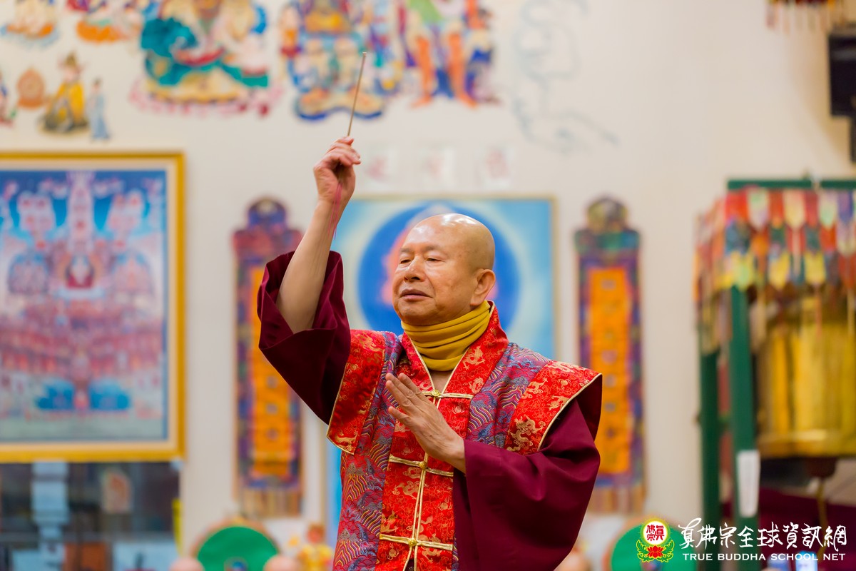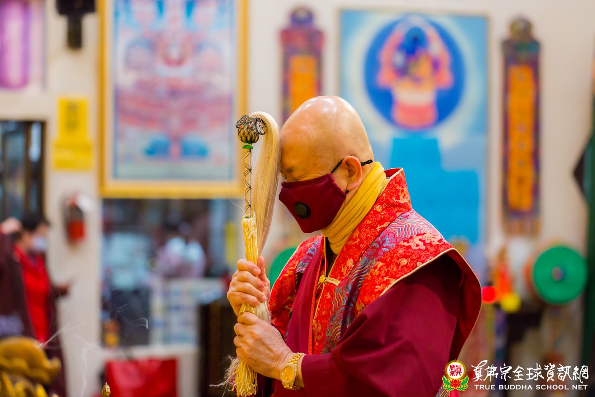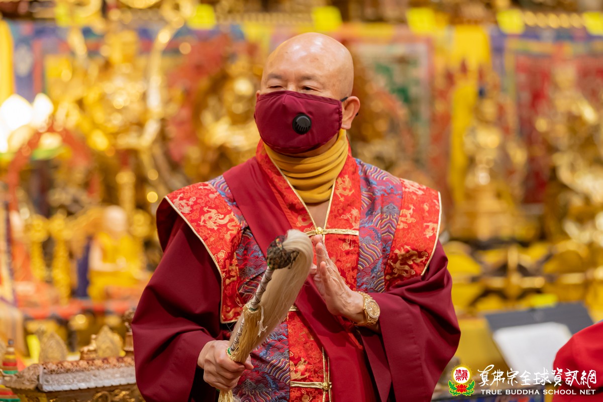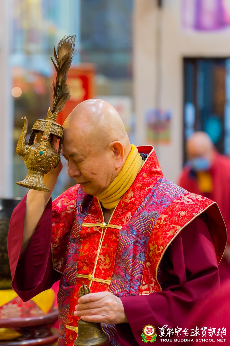 在聽聞聖尊寶貴的法語開示後,聖尊賜授皈依灌頂、加持大悲咒水和為佛像開光,及慈悲為每位善信拂塵加持。