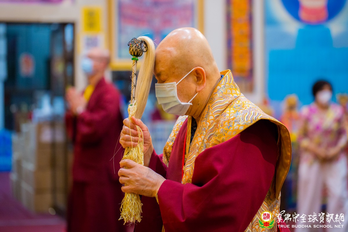5月29日星期六晚上八點,同修完地藏王菩薩法之後,師尊祈求大願地藏王菩薩以光明珠的光明,普照人間,讓瘟疫退散;請地藏王菩薩以其錫杖及五佛,接引有緣中陰往生清淨佛國;請地藏王菩薩以諦聽之力,見狀救苦;請地藏王菩薩以其大願力,生生世世救度衆生;請地藏王菩薩加持眞佛宗弟子及衆生,身體健康、萬事如意、逢凶化吉、道心堅固。頭頂五佛,佛光普照,右手錫杖,震開地獄之門,左手光明珠,照耀十法界,座下諦聽,見狀救苦。讓瘟疫退散,新冠病毒退散,讓需要水的地方有水,讓農作物盛產,讓人民幸福。