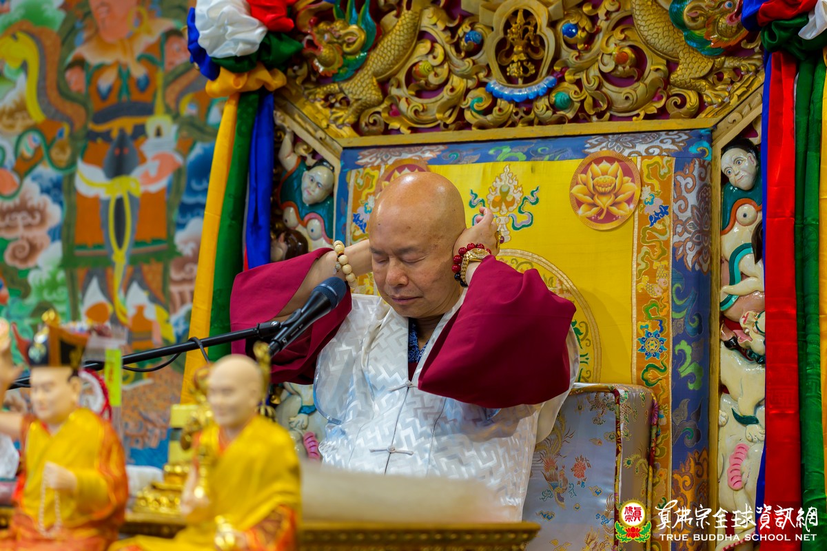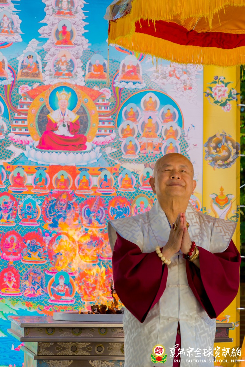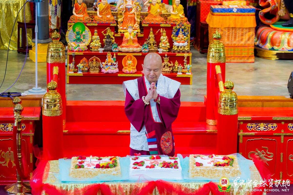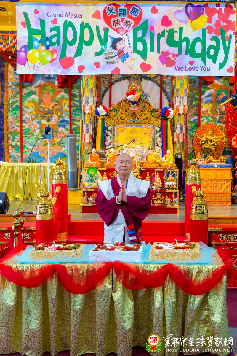 開示已畢,眾弟子齊唱「父親節快樂」歌祝賀真佛宗偉大的慈父蓮生法王父親節快樂,並請法王吹蠟燭及切蛋糕。zoom上眾弟子也紛紛祝賀法王。接著法王賜授在場弟子無上珍貴的蓮花童子法灌頂,法會吉祥圓滿。
