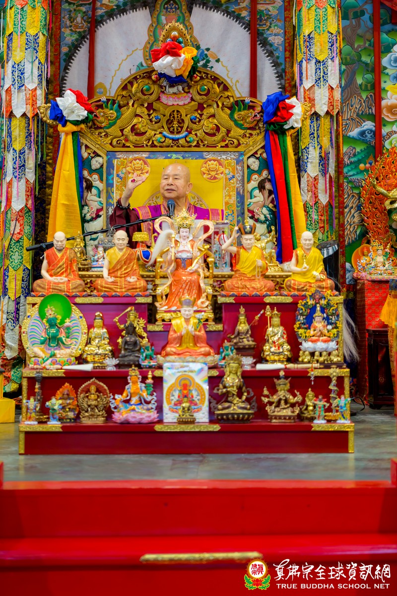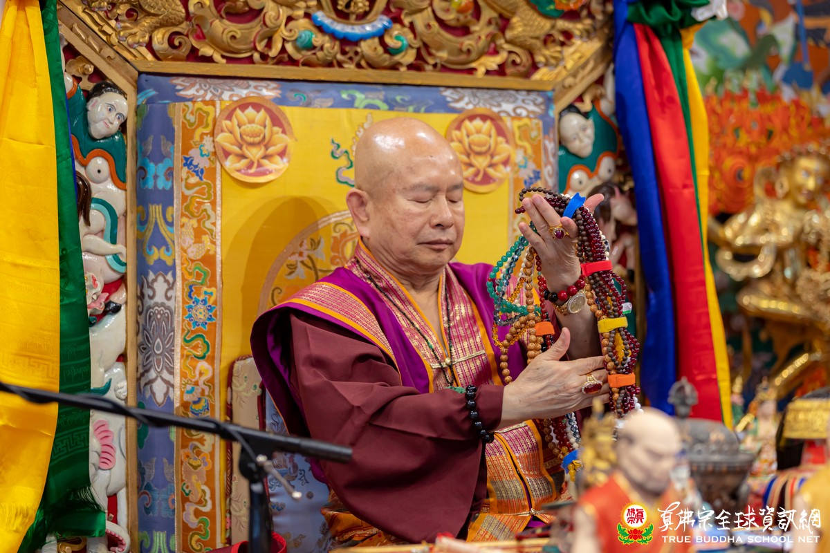 說到今日的護摩法會,法王開示今天護摩法會主尊「長壽佛」的長壽甘露都溢出來了,飲了一口後,感到身心安定。儘管天氣炎熱,但長壽佛的甘露讓大眾都感到一股安寧的法流,非常清爽。