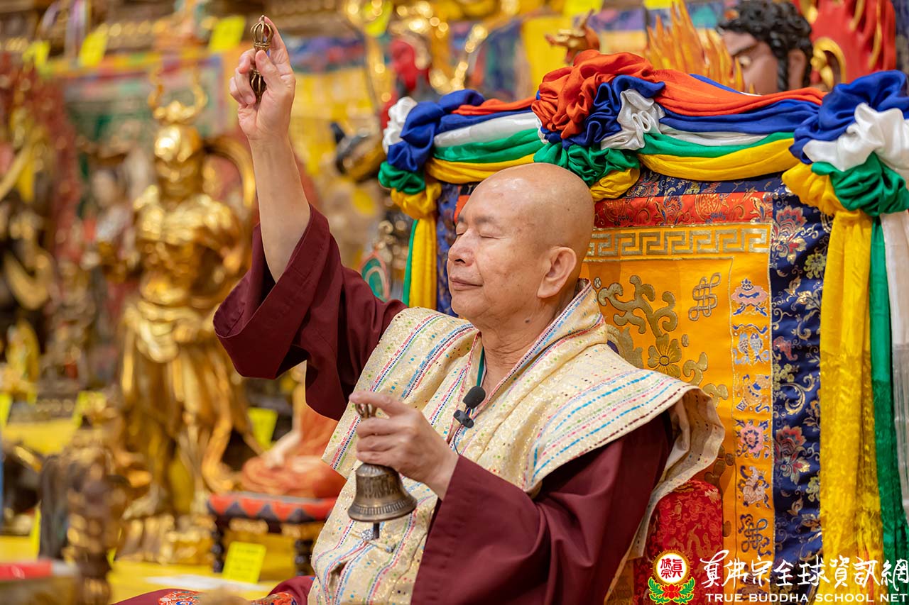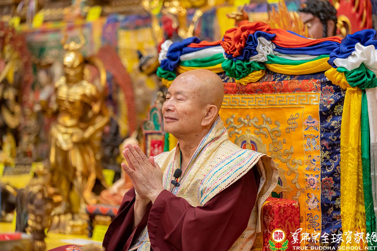 2021年7月3日,西雅圖雷藏寺同修蓮花童子本尊法。同修後,聖尊蓮生法王先帶領大家敬禮傳承祖師、壇城三寶、同修的本尊蓮花童子,然後再跟大家問好。