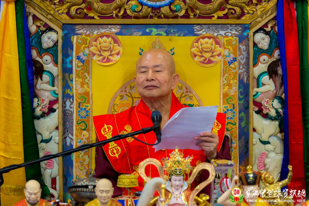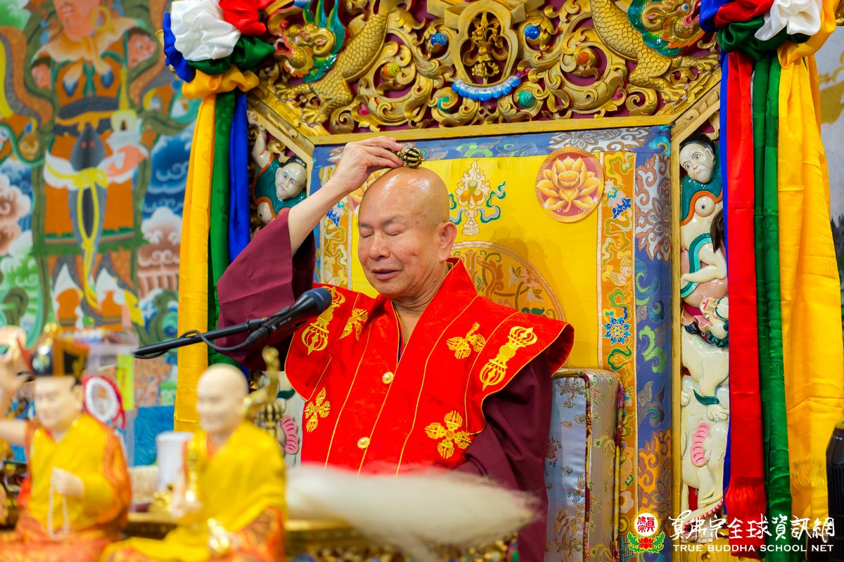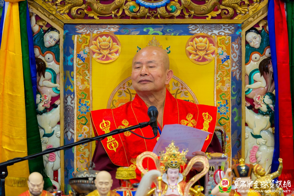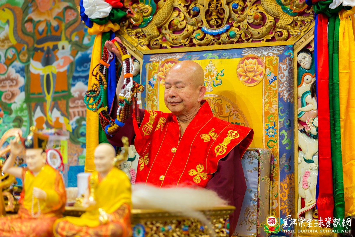 法王也表示,主祈今日紅財神的有福了!因爲當法王將金剛杵置於紅財神之頭頂時,紅財神必然吐出法財,包括正財、法財、偏財。法王說,真佛宗是中獎宗,並列舉了許多中獎的弟子。法王也祝福大家中獎!