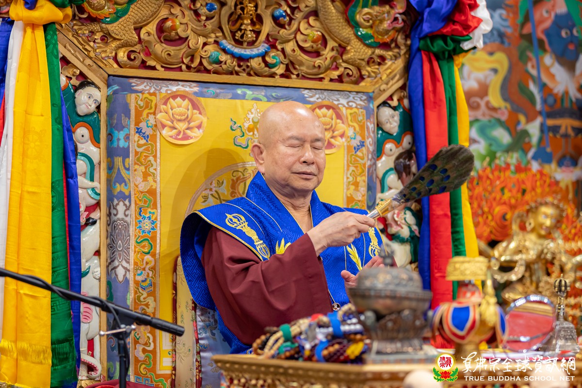 開示完畢后,法王下座與世界各國的弟子在線上招呼問好,接著為在場的同門賜授喜金剛灌頂,喜金剛護摩法會至此圓滿結束。