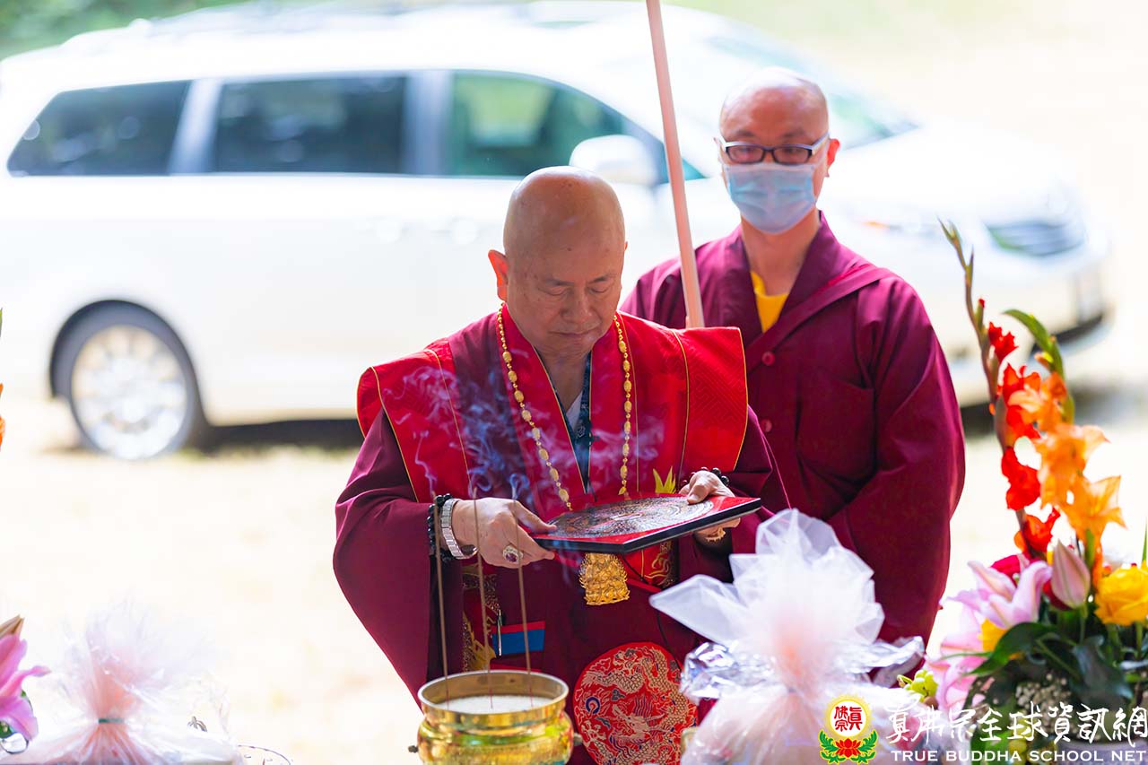 2021年9月5日,美國真佛宗西雅圖彩虹雷藏寺恭請根本上師蓮生法王在彩虹雷藏寺主持生基儀式,為眾弟子們做生基。