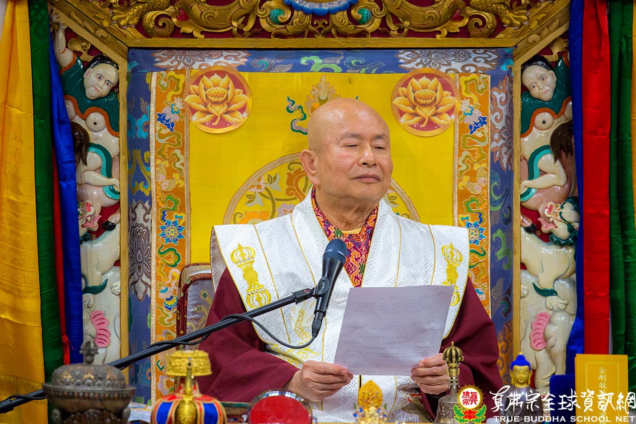 開示完畢後,法王與線上的弟子一一道別,然後再為現場的弟子進行灌頂。下個星期法王主壇的法會主尊為象征空性的金剛薩埵,就讓我們共同虔心參與法會,一起煩惱清、霉運除、業障消。