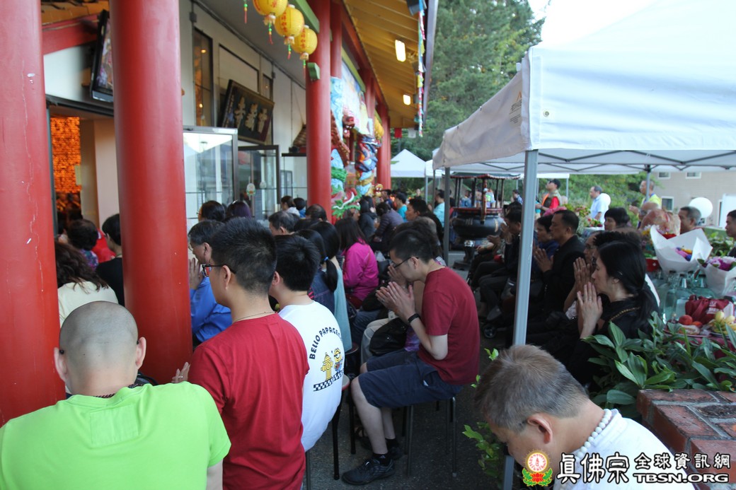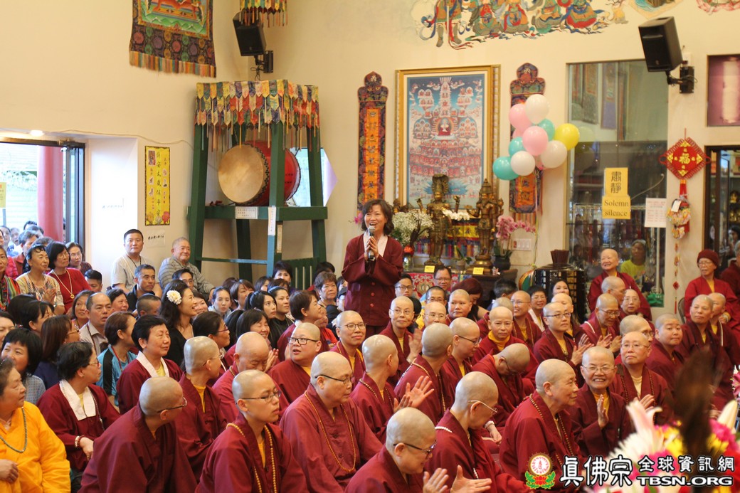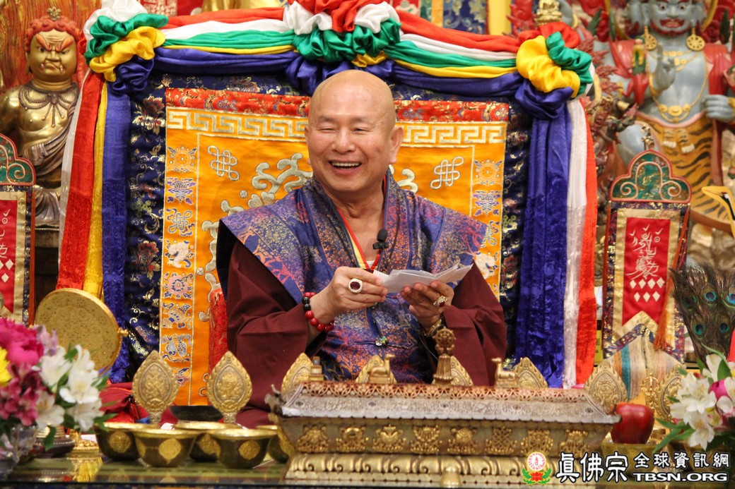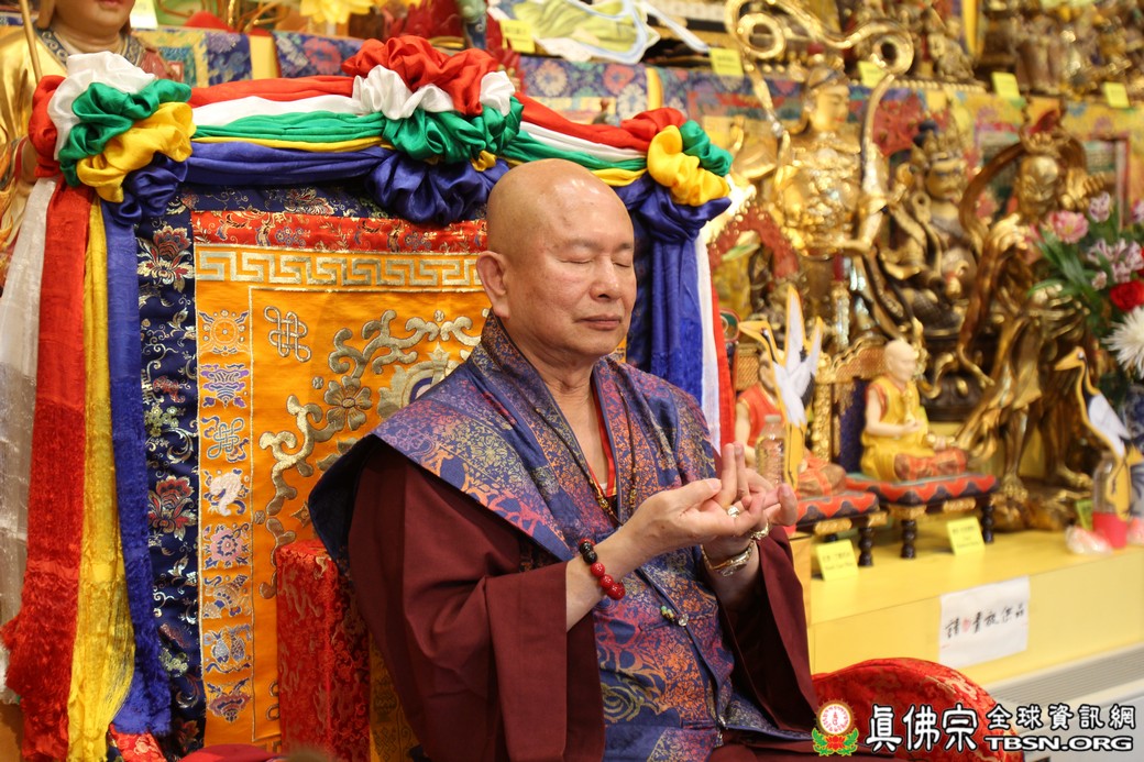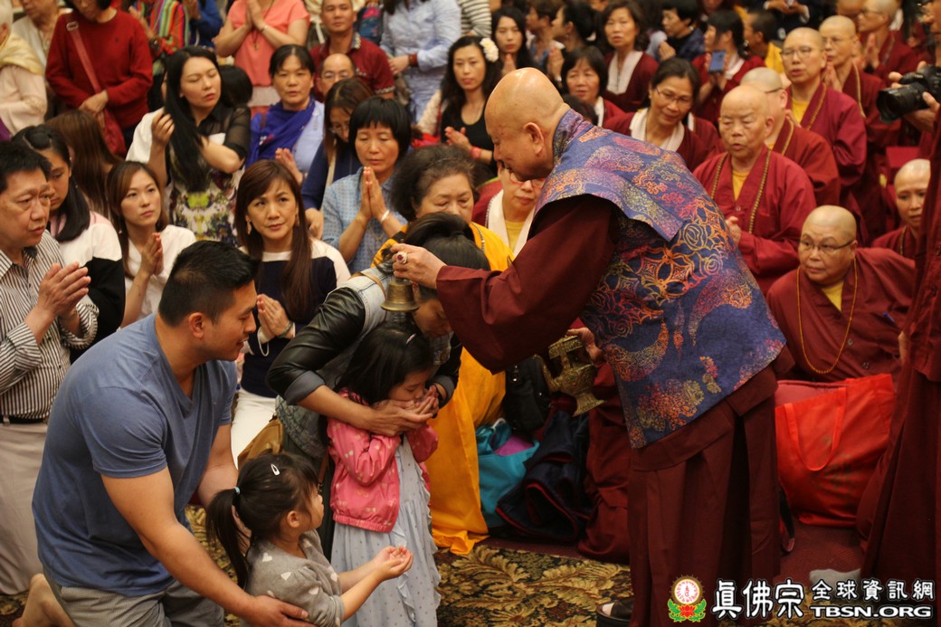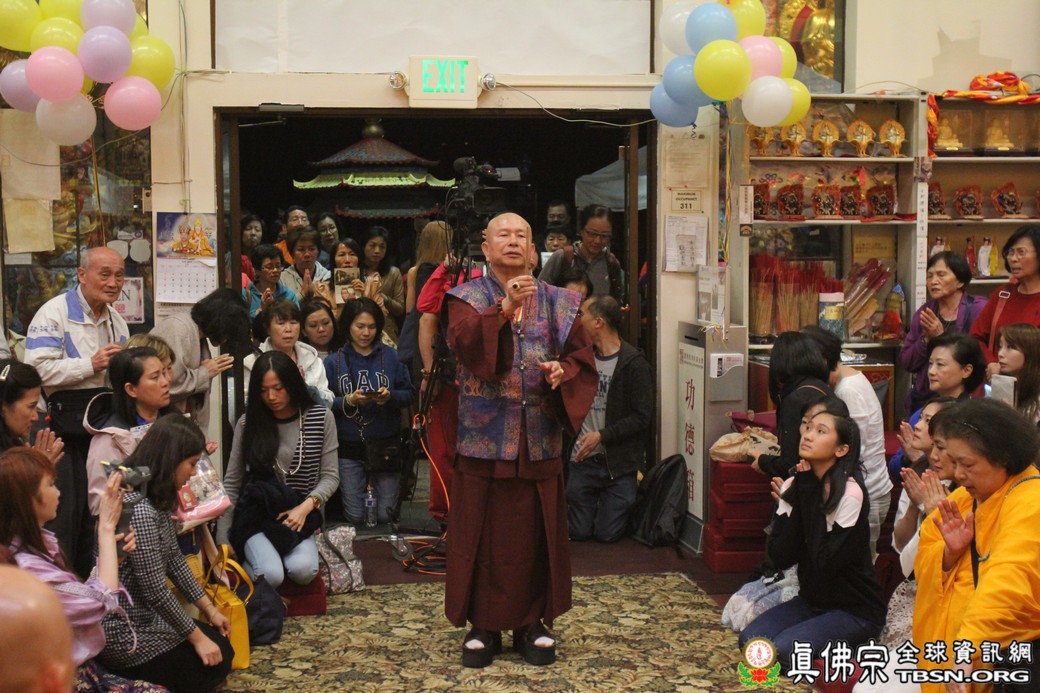 在精闢的開示後,雷藏寺唱誦組帶領大眾唱誦阿彌陀佛聖號。會後,聖尊為求皈依的信眾賜受灌頂,並加持大悲咒水、開光佛像。最後祖廟推出大型的生日蛋糕慶賀聖尊的生日,大家一遍又一遍的齊聲歡唱不同語言的生日快樂歌,聖尊與師母一起切蛋糕,滿堂的掌聲、喝采聲不絕於耳,無論是現場或是收看網路直播的同門,全世界的弟子都誠心的對根本上師獻上滿滿的祝福。