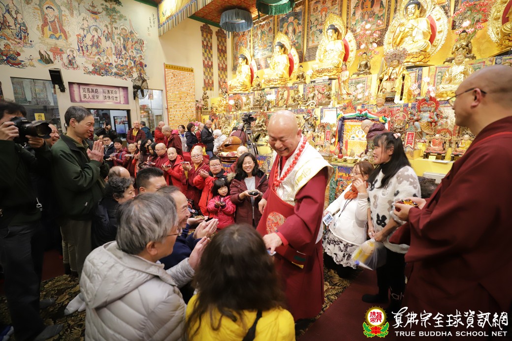 在聖尊精闢的開示結束後,祂為求皈依的信眾們賜受灌頂,並加持大悲咒水,以及開光佛像,臨行前慈悲為大眾摩頂加持滿願。聖尊晚上的慈悲教化,祂的一句「我無來去」,真的令弟子心中洶湧著澎湃的感動,只要弟子們虔信根本上師,只要弟子們憶念根本上師、只要弟子們持上師心咒,祂照樣可以在弟子面前說法。謹此一心虔誠禮敬無上大恩根本傳承上師。