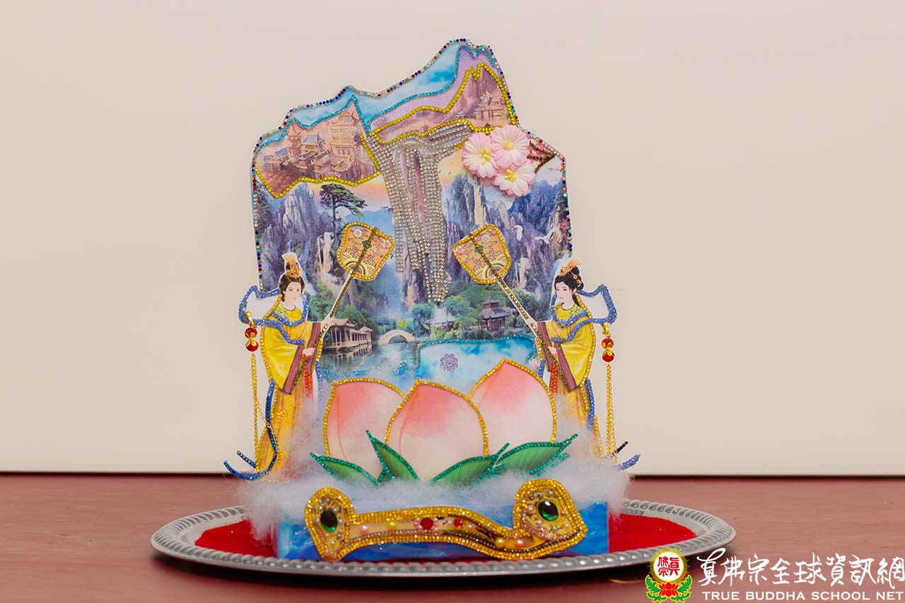 法王先提到千艘法船是依瑤池金母、西方三聖及地藏王菩薩的力量超度。第一尊顯化加持的是瑤池金母,然後法王再變化本尊阿彌陀佛。若說瑤池金母及阿彌陀佛是同體,會引起道教及佛教界的爭論。一般的學者會將瑤池金母及王母娘娘歸類在道教的民間信仰;而阿彌陀佛則屬於純粹的佛教。但在台灣,道教和佛教往往一起尊敬。