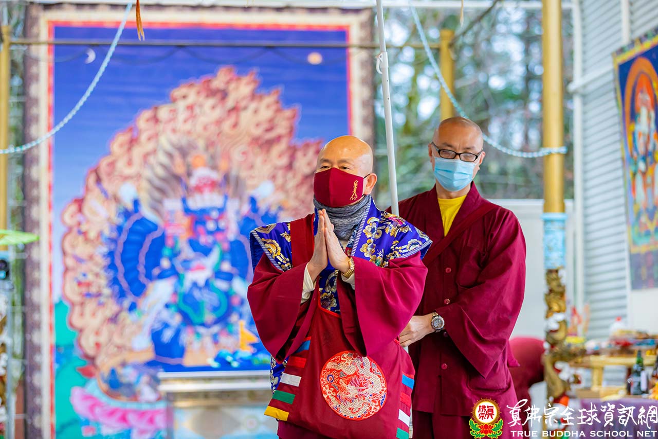 法會後,法王帶領大衆頂禮壇城,與線上的同門揮手告別,並賜授『大威德金剛法』灌頂。大威德金剛護摩法會,圓滿結束!